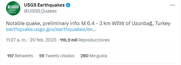 — USGS Earthquakes (@USGS_Quakes) February 20, 2023