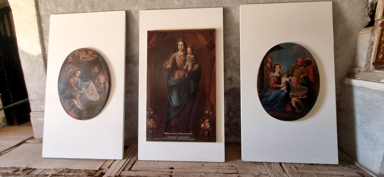 Las piezas entregadas son cinco esculturas que datan del siglo XVIII como una virgen niña con Santa Ana, un niño Dios, una virgen de Guadalupe, un San José y un Cristo crucificado; así como cinco pinturas de retablo de San Rafael, San Vicente Ferrer, dos Escenas, una de la adoración de los pastores y una adoración de los reyes, así como una pintura del Virgen del Rosario, patrona de la comunidad.