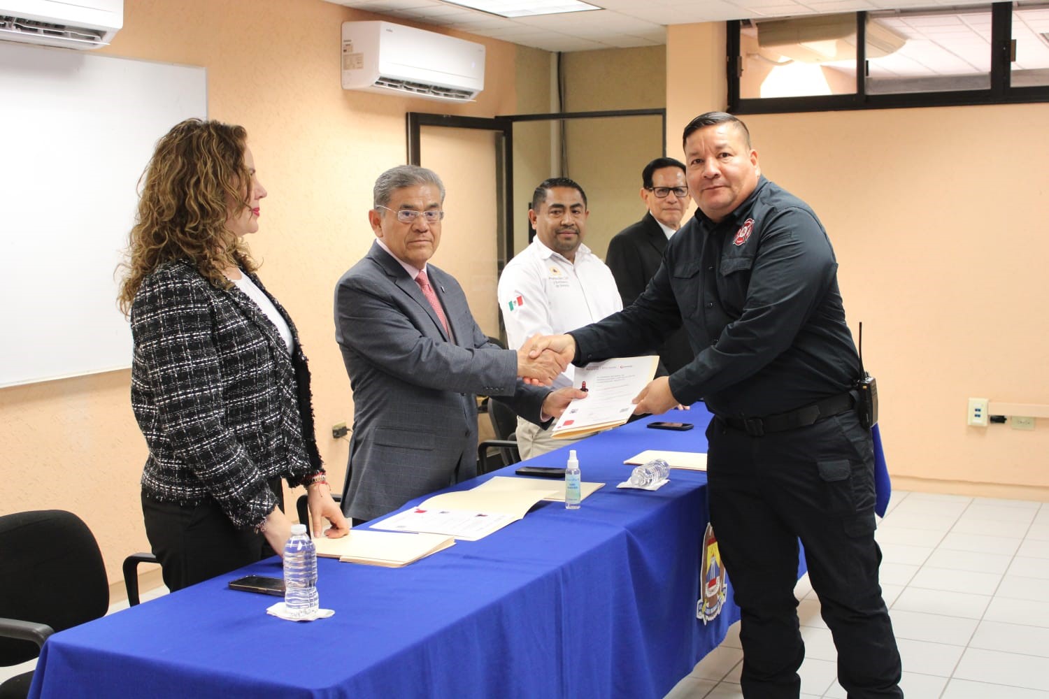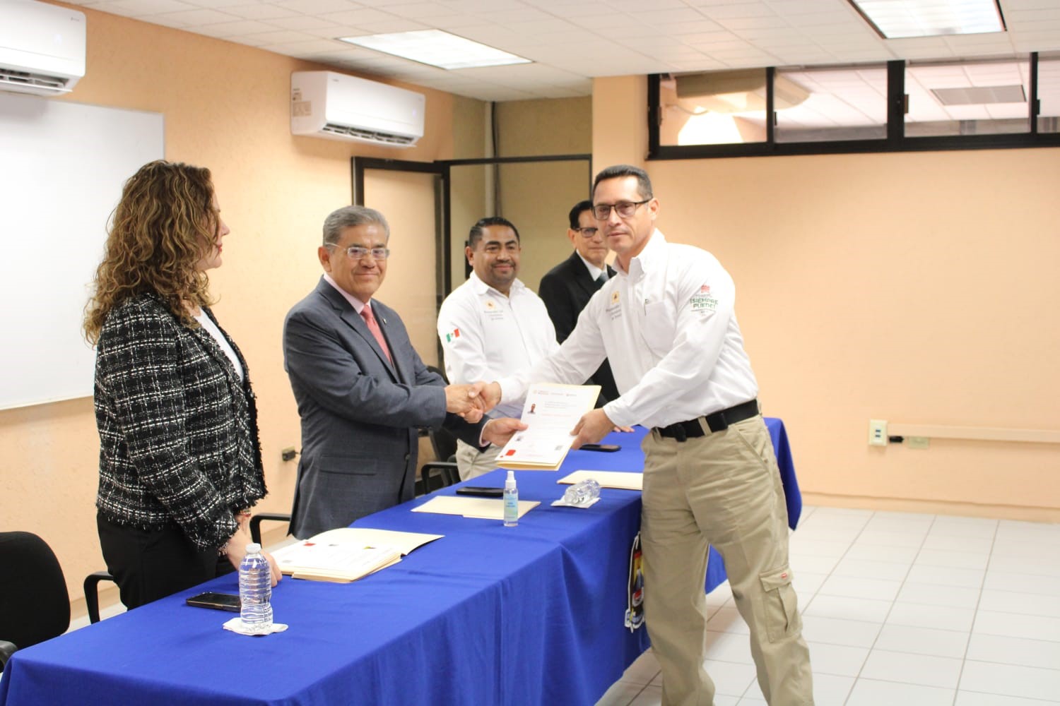 Torreón.- El rector de la Universidad Autónoma de Coahuila, Salvador Hernández Vélez entregó el nombramiento como director del Centro de Transferencia del Conocimiento (CTC), al Dr. Manuel Medina Elizondo, quien fue el impulsor de este proyecto, al tiempo que se entregaron certificaciones en el Estándar de Competencia 0076 a miembros de Protección Civil y Bomberos, así como de empresas privadas en materia de Protección y Seguridad Industrial.