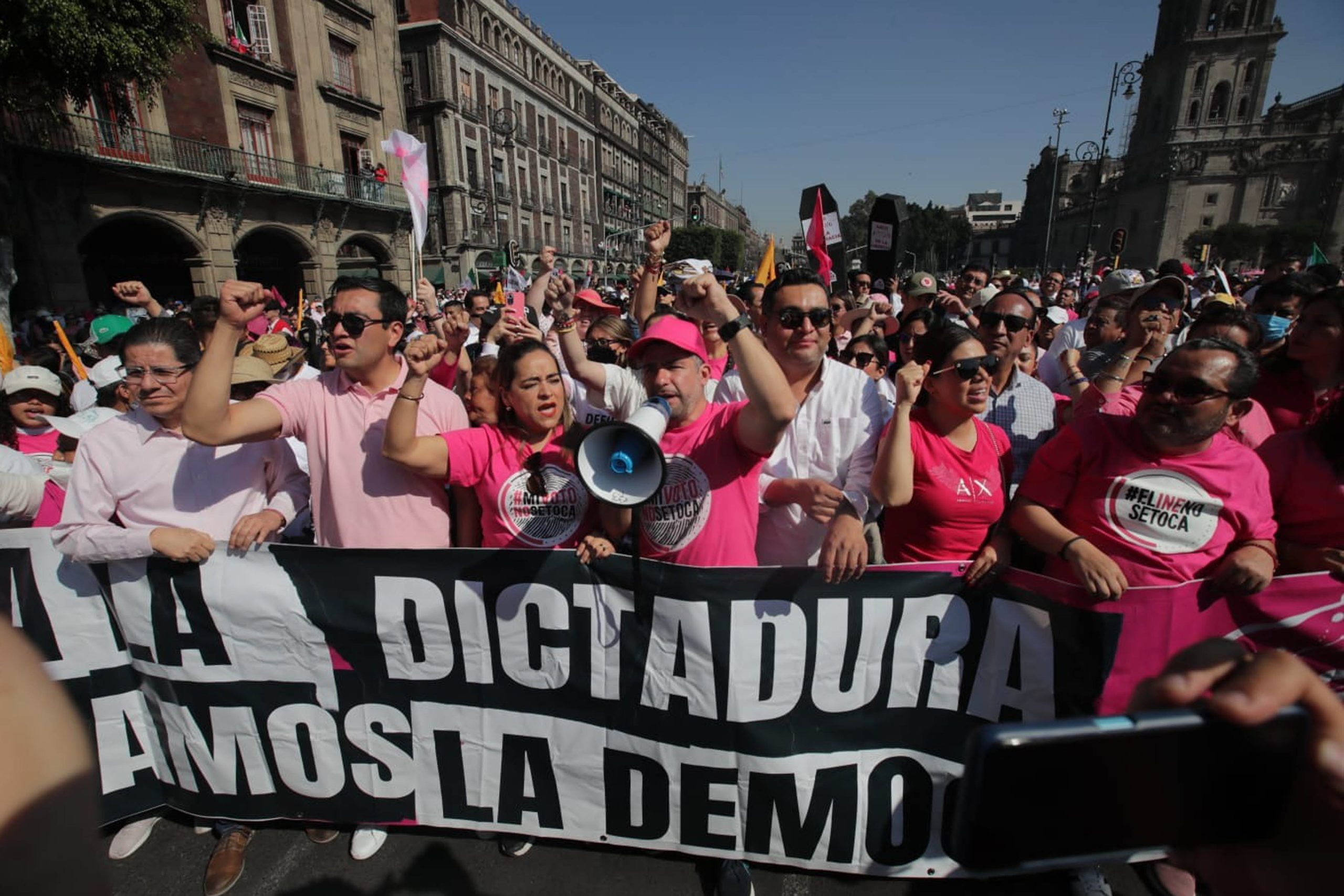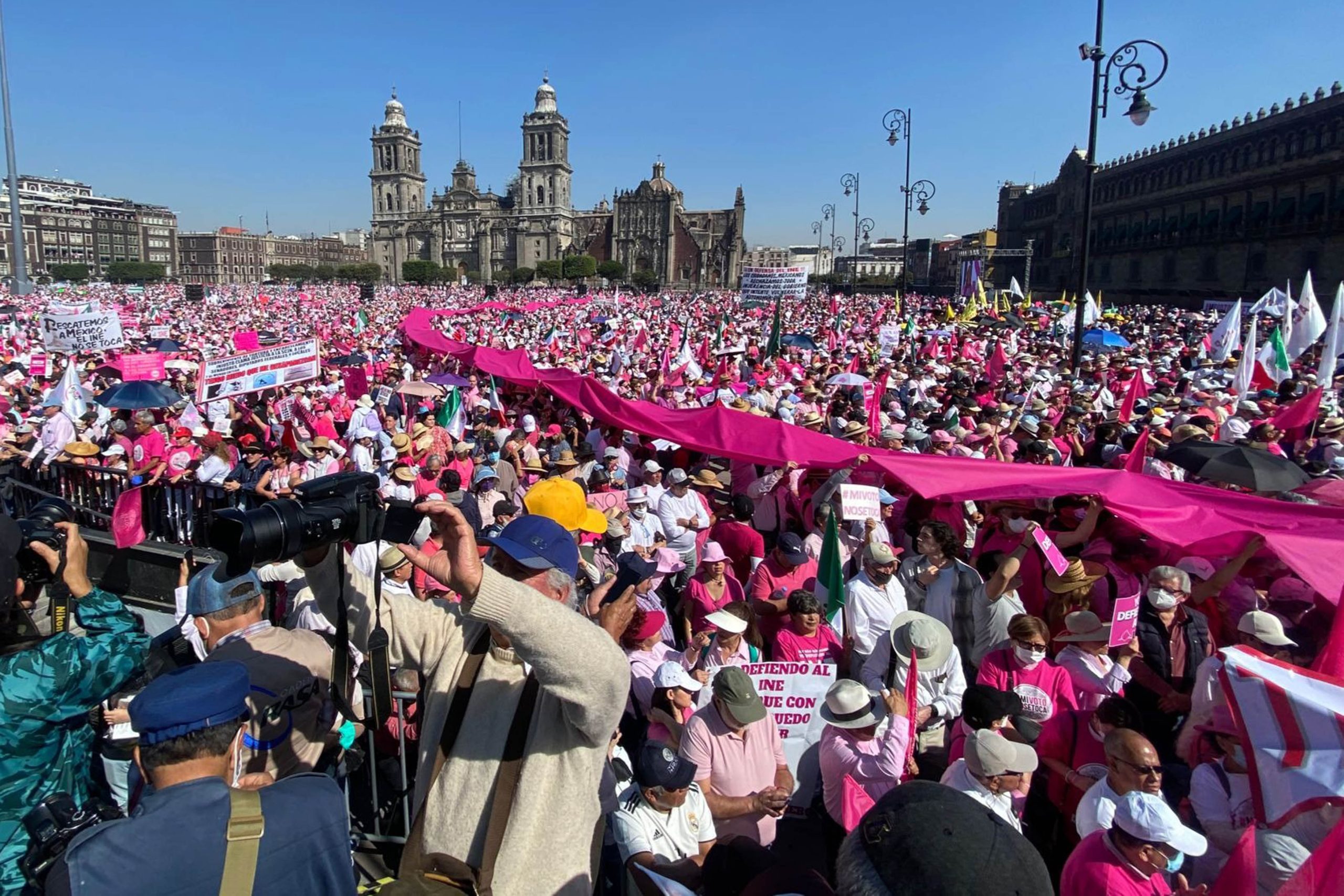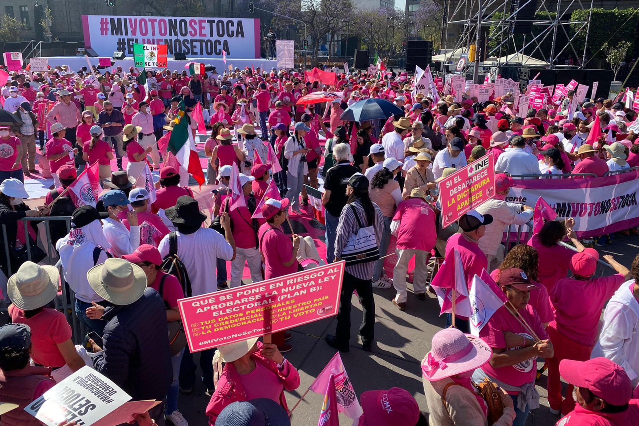 Ciudad de México.- Miles de personas se congregaron este domingo en el Zócalo de la Ciudad de México, para manifestarse en contra del llamado plan b, que busca debilitar al Instituto Nacional Electoral (INE).