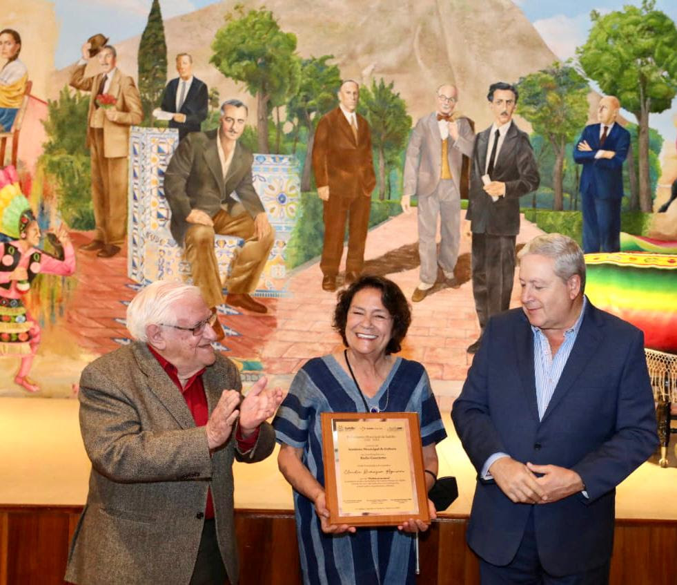 Por enaltecer el arte y la tradición del sarape de Saltillo, el Gobierno Municipal y Radio Concierto reconocieron a Claudia Rumayor Aguirre por dedicar su vida a la investigación, preservación, manufactura y difusión de este símbolo tradicional saltillense.