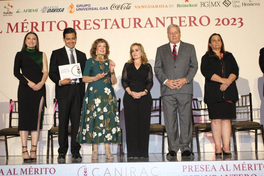 La noche de este martes, en las instalaciones de Villa Ferré, la Cámara Nacional de la Industria Restaurantera y de Alimentos Condimentados (Canirac) Coahuila llevó a cabo la entrega de la Presea al Mérito Restaurantero 2023 a propietarios, socios y colaboradores de sitios gastronómicos en Saltillo.
