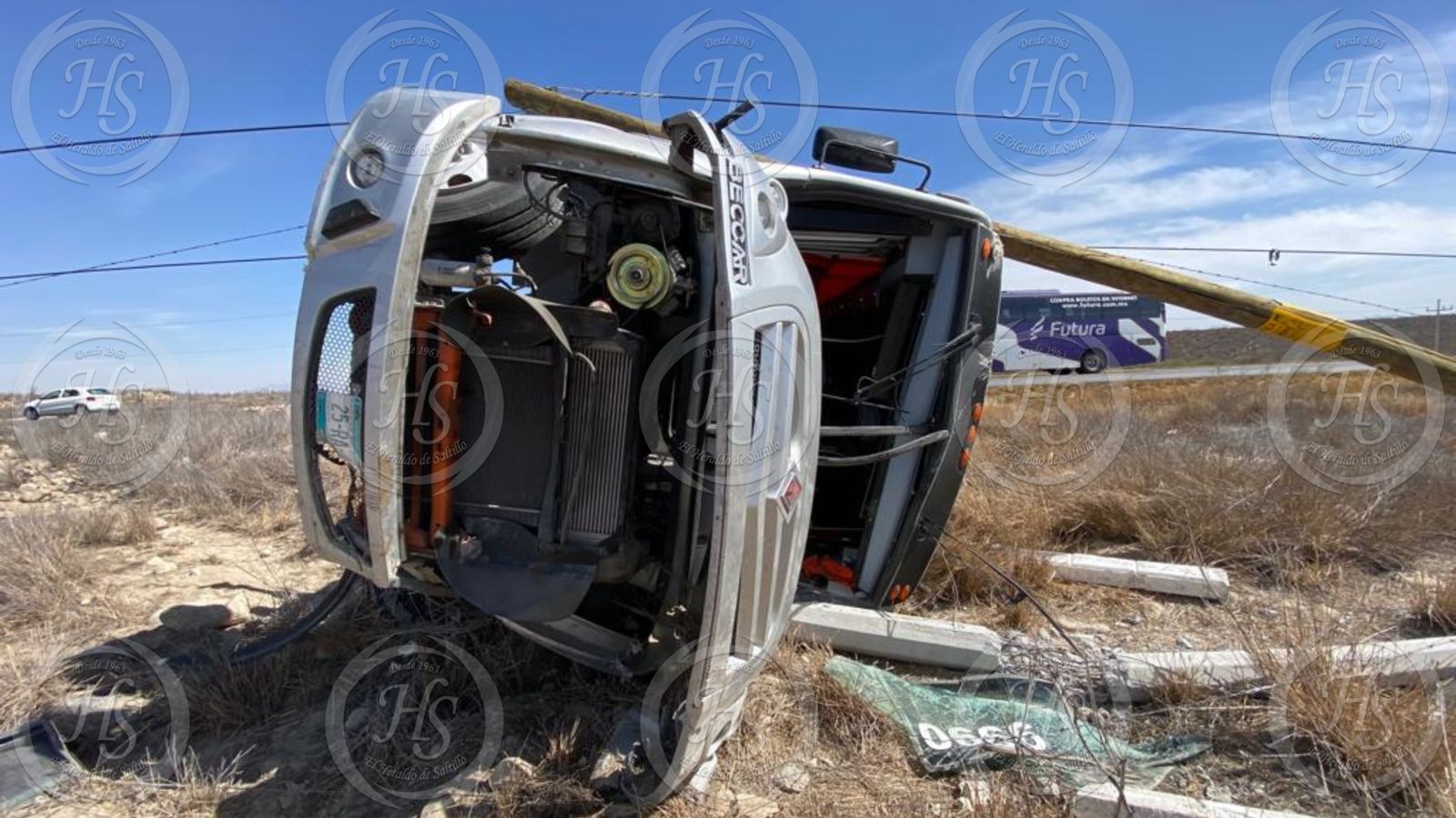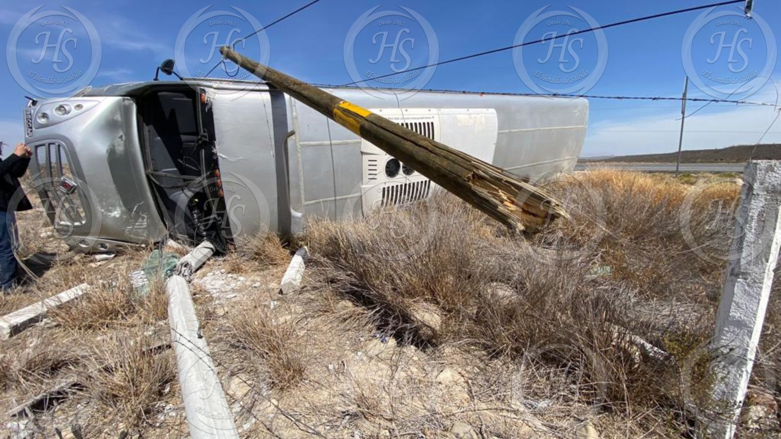 Este jueves, Laura Castillo, de 50 años, perdió el control del volante del autobús de pasajeros que conducía, salió del pavimento, derribó un par de postes y terminó volcando su unidad, que afortunadamente viajaba sin pasaje.