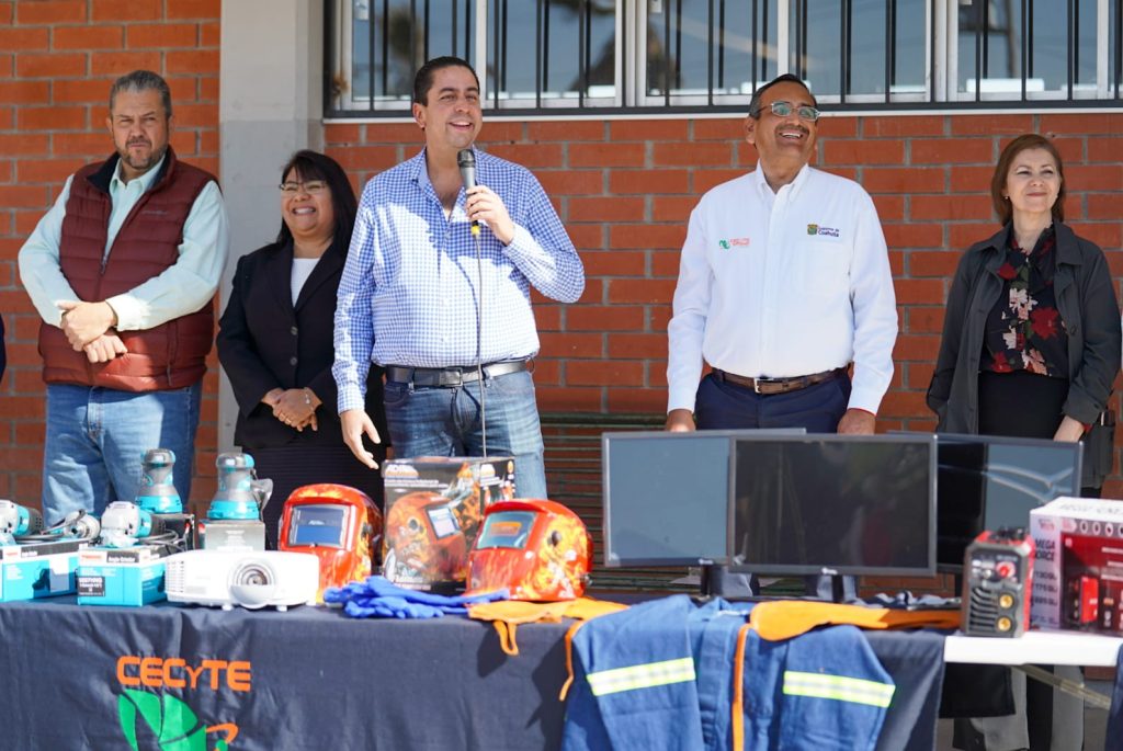 Con el propósito de reforzar el equipamiento del área de talleres, el alcalde de Ramos Arizpe, Chema Morales Padilla, entregó recursos por 100 mil pesos al Colegio de Estudios Científicos y Tecnológicos del Estado (CECyTE) “Felipe Carrillo Puerto” a través del programa “Mejora Tu Escuela”.