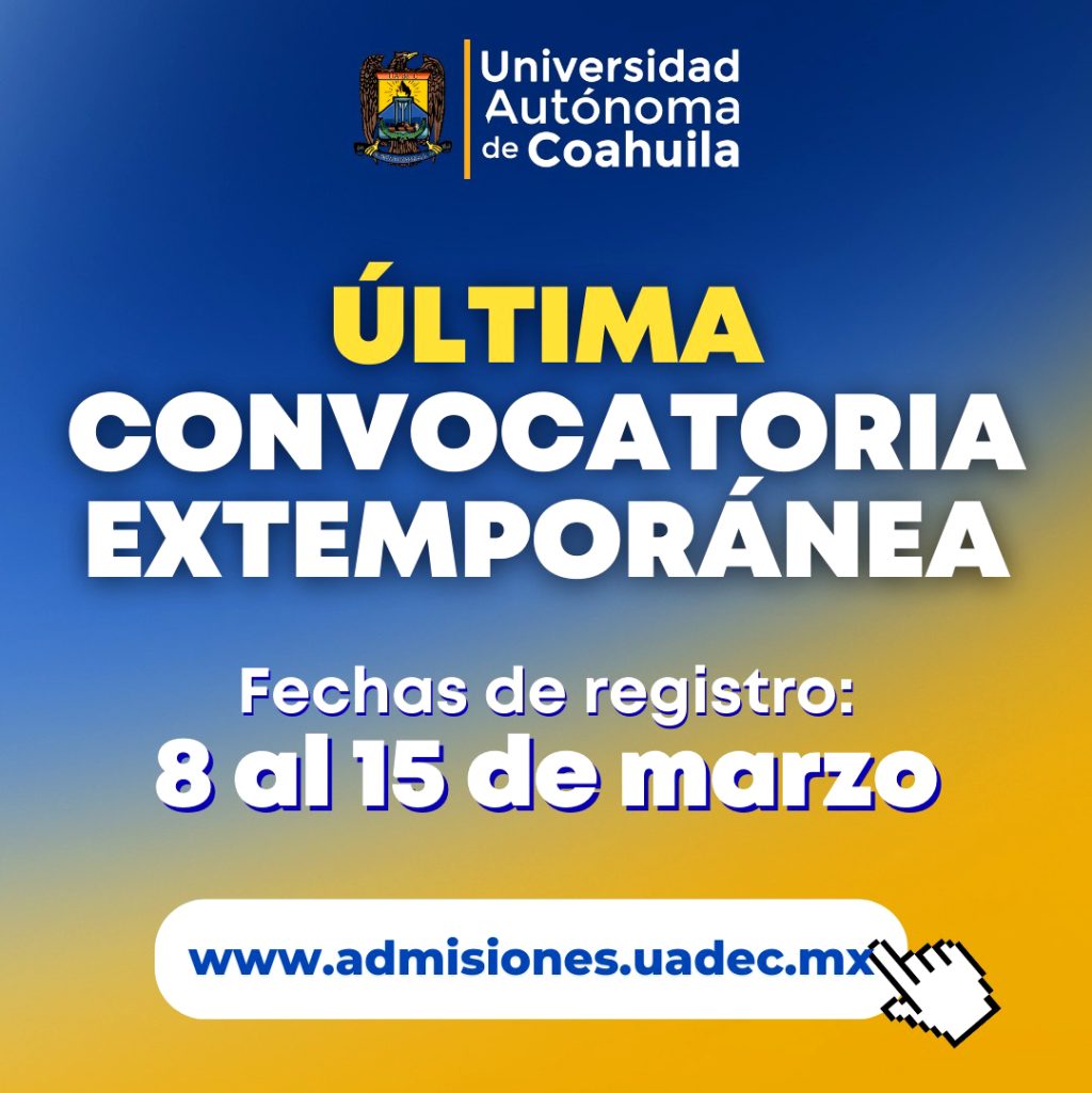 Si deseas estudiar en la Universidad Autónoma de Coahuila y no alcanzaste a tramitar la ficha para el examen de ingreso, la máxima casa de estudios abre del 8 al 15 de marzo un último periodo de expedición de fichas para ingresar a Bachillerato, Licenciatura y Posgrado para el semestre agosto-diciembre 2023.