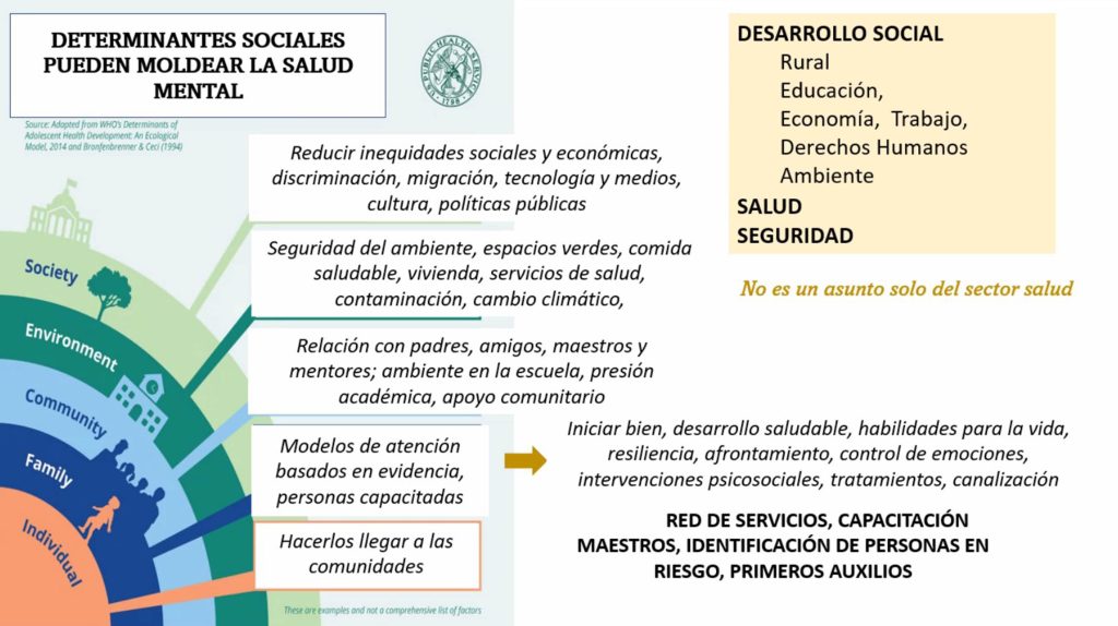 Durante la pandemia se registró una sobremortalidad (43 por ciento más de las esperadas en 2020 y 47 por ciento en 2021); las enfermedades mentales y suicidio que comenzaron con 9.64 por ciento en 2020, subieron a 13.42 en 2021, apuntó.