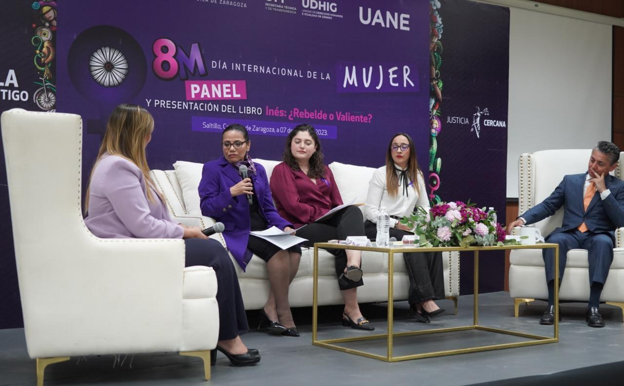 Este martes, en las instalaciones de UANE Campus Saltillo, el Poder Judicial del Estado de Coahuila de Zaragoza realizó el Panel y Presentación del Libro “Inés: ¿Rebelde o Valiente?”, de Margarita Castillo, esto como parte de la conmemoración del Día Internacional de la Mujer con el objetivo de dar a conocer sobre la violencia de género y el empoderamiento de la mujer.