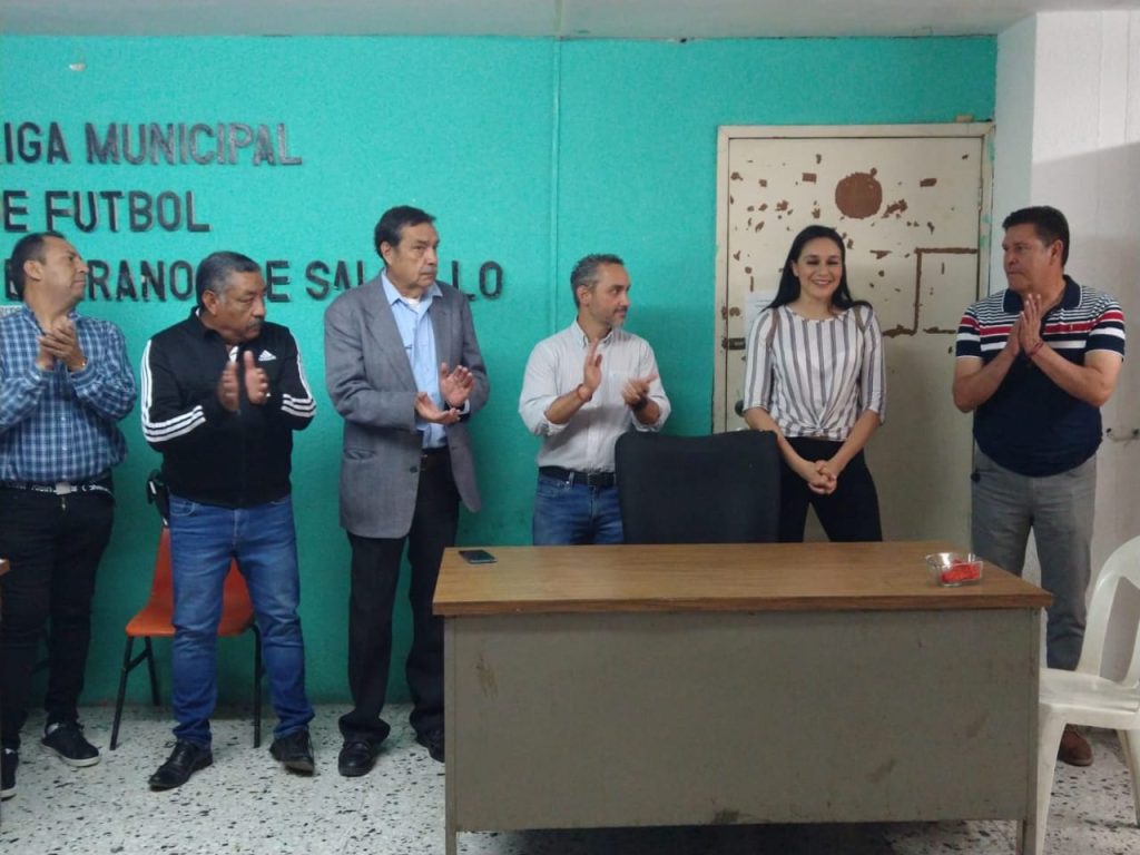 Alondra Pérez Flores, integrante del área de Cultura Física y Deporte del Instituto Estatal del Deporte de Coahuila (INEDEC), acompañó a Antonio Cepeda Licón, Director del Instituto Municipal del Deporte en Saltillo y a Francisco Javier Cueto, presidente de la Liga Municipal de Futbol de Veteranos de Saltillo, en esta celebración.