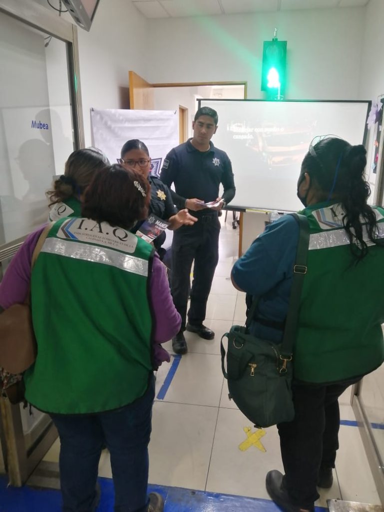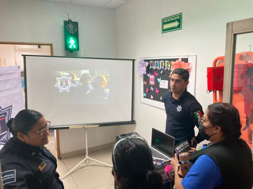 Elementos policiales visitaron la empresa MUBEA para concientizar al personal sobre la necesidad de reforzar medidas indispensables como el respeto a los límites de velocidad, el uso del cinturón de seguridad y evitar conducir bajo el influjo de sustancias tóxicas.