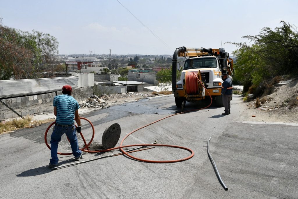 Ante tal situación, cuadrillas de COMPARA acudieron al medio día de este viernes a revisar la situación ya que se registraron reportes desde temprana hora por la fuga de agua con malos olores por parte de vecinos en las calles Seis, División e Insurgentes, por lo anterior acudió personal subcontratado por la para municipal con un camión-bomba que apoyaron en la limpieza y desazolve del drenaje.