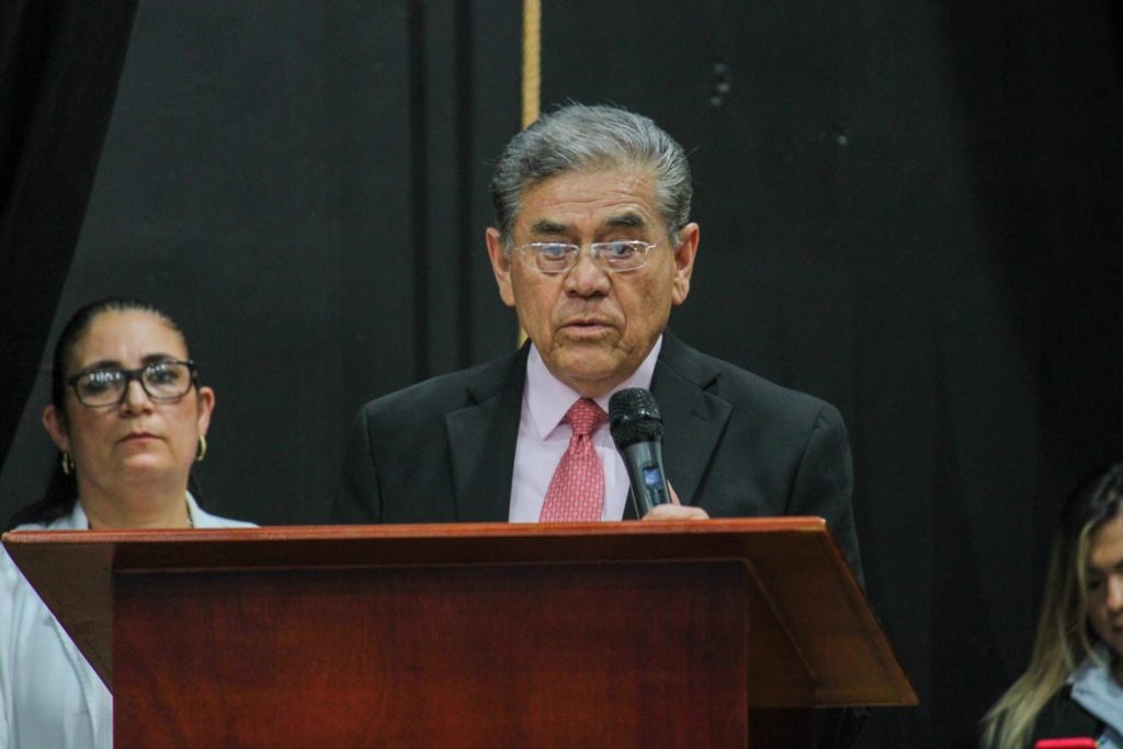 Hernández Vélez, dijo que estudiantes y docentes son el pilar fundamental para que esta Facultad de Medicina siga superando retos y alcanzando grandes logros; los exhortó a trabajar en equipo con la nueva administración, en beneficio de todas y todos, aportar a la seguridad y al bienestar de nuestro estado.
