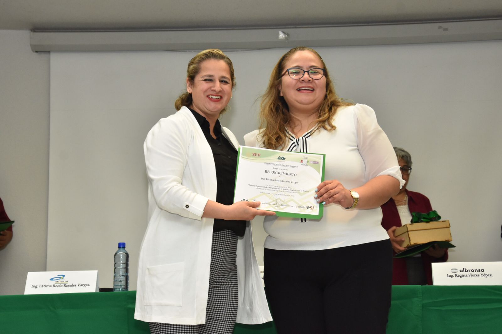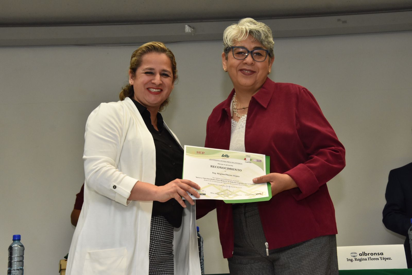 Marlenne Medina Trejo, Secretaria Académica de la UTC, entrego un reconocimiento a cada uno de los panelistas participantes a nombre de la universidad y del rector. (EDUARDO SERNA)