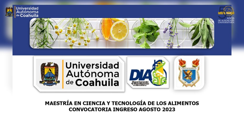 La Universidad Autónoma de Coahuila a través de la Facultad de Ciencias Químicas Unidad Saltillo, convoca a egresados en Química, Biología, Ingeniería Química, Bioquímica, Agronomía, Biotecnología y áreas afines, a cursar la Maestría en Ciencia y Tecnología de Alimentos, cuyas clases inician en agosto 2023.