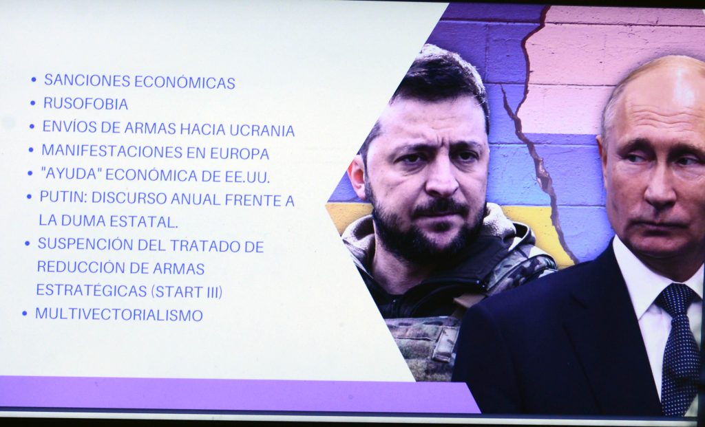 A su vez, Federico José Saracho López, profesor de la Facultad de Filosofía y Letras de la UNAM, sostuvo que este conflicto no se puede trazar fácilmente; a un año de la invasión hay grandes capitales y burguesías que obtienen ganancias. “La guerra entre Rusia y Ucrania ha sido utilizada abiertamente para el enriquecimiento de la burguesía tecnocapitalista, militarista, del norte global y de Estados Unidos en particular”.
