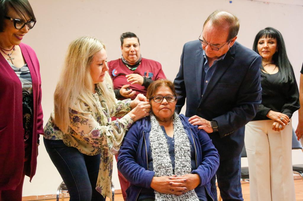 Cada aparato fue ajustado a las necesidades de los pacientes, en su mayoría adultos mayores, así como niñas y niños, y en el evento se entregaron los aparatos a Gloria Urbina Carrizales, Aurora de Valle Saucedo y la niña Victoria Sánchez Jalomo.