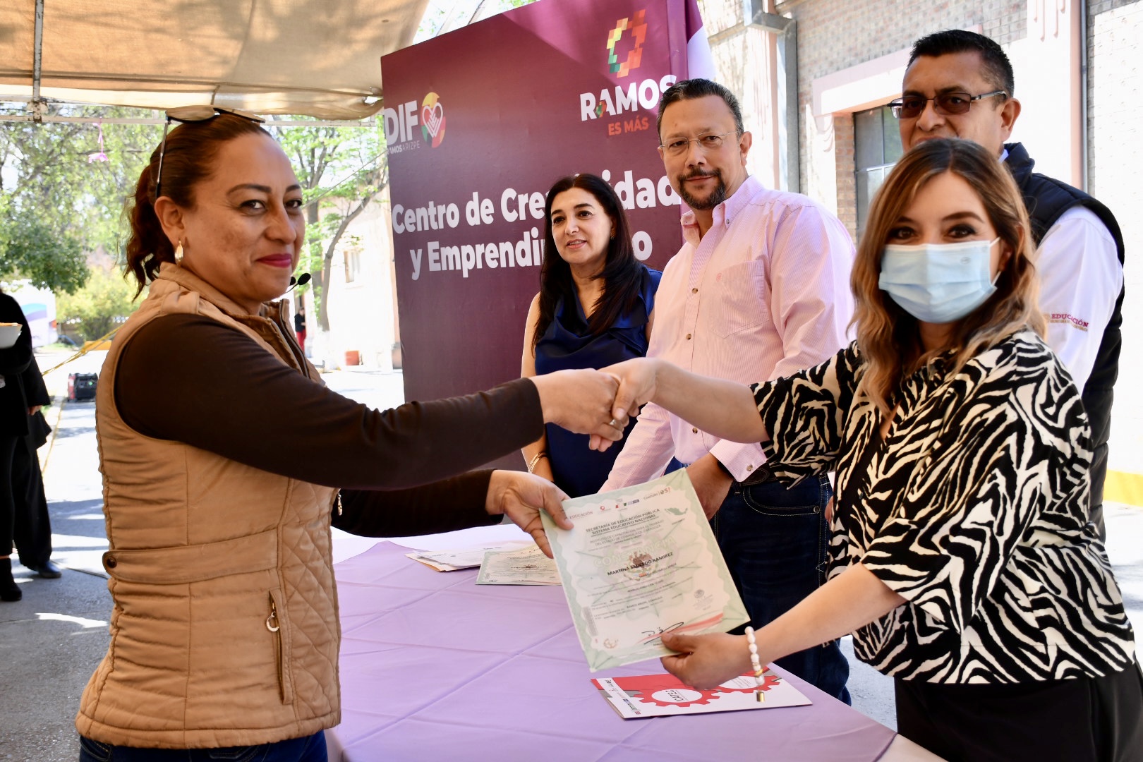 El sistema DIF en Ramos Arizpe a través del Centro de Creatividad y Emprendimiento celebraron la primera graduación en el año de ramosarizpenses que concluyeron satisfactoriamente las actividades en los distintos talleres de autoempleo que en esta ocasión recibieron su constancia 110 mujeres.