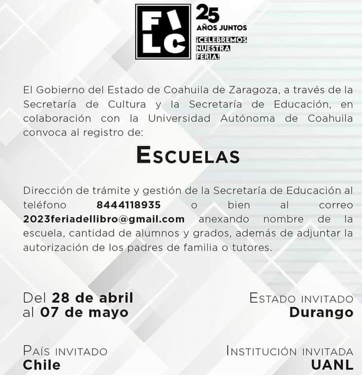 Para coordinar las acciones que optimicen la organización de la Feria Internacional del Libro Coahuila 2023 (FILC) en su vigésima quinta edición, se reunieron los titulares de la Secretaría de Educación, Francisco Saracho Navarro y de Cultura, Ana Sofía García Camil.
