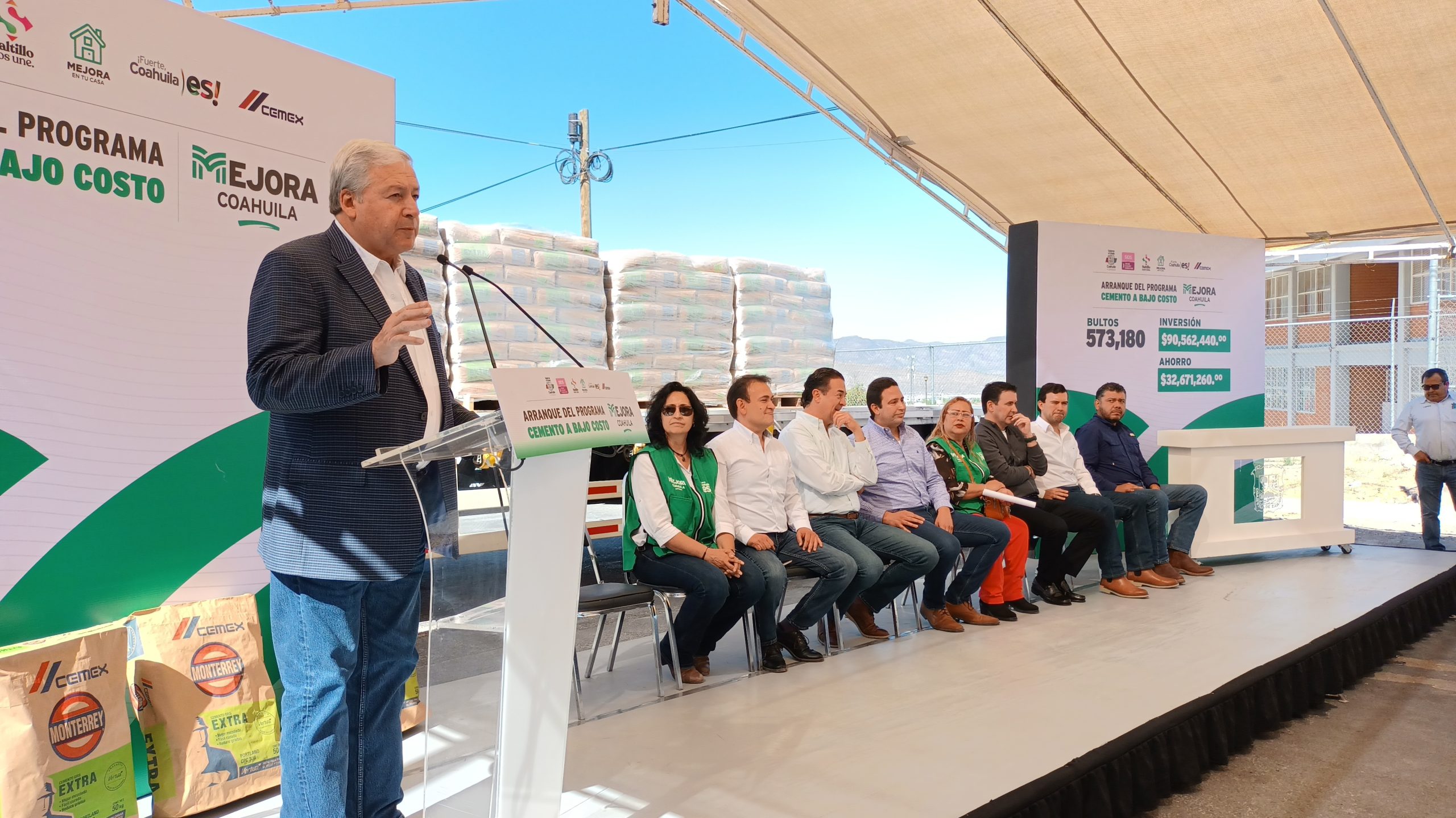 Al encabezar junto con el titular de la Secretaría de Inclusión y Desarrollo Social de Coahuila, Javier Díaz González, el arranque del programa de Cemento a Bajo Costo “Mejora Coahuila”, el munícipe señaló al hacer uso de la palabra que la seguridad que prevalece en Coahuila y Saltillo, representa la plataforma en la que se funda el desarrollo social y el desarrollo económico.