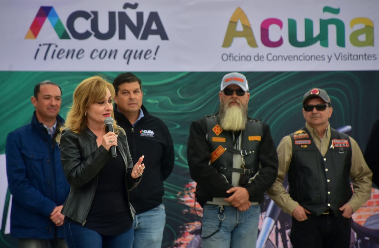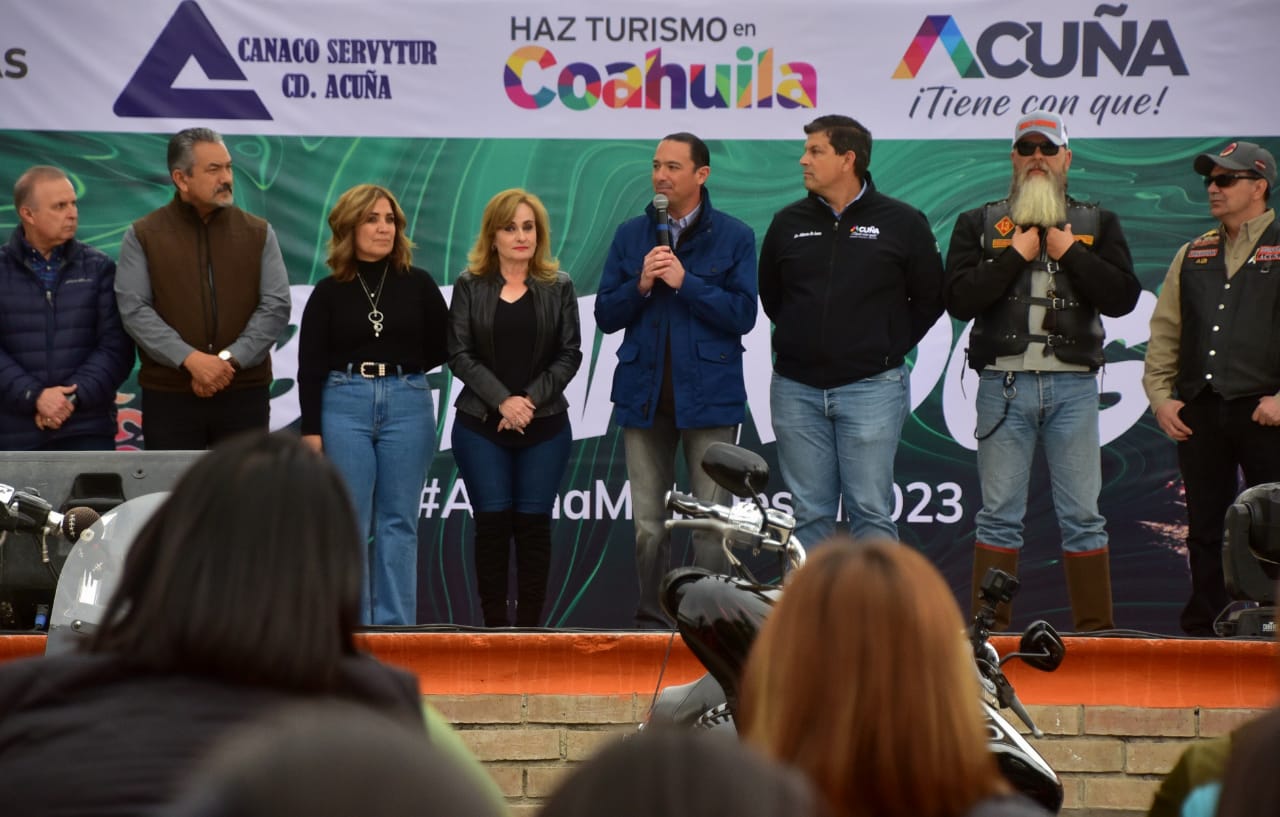 Ciudad Acuña.- Con el Moto Fiesta Acuña 2023, esta frontera se abre camino como un destino biker atractivo y seguro, aseguró la Secretaria de Turismo y Desarrollo de Pueblos Mágicos de Coahuila, Azucena Ramos Ramos, al inaugurar junto con el alcalde Emilio de Hoyos Montemayor el encuentro de motociclistas.