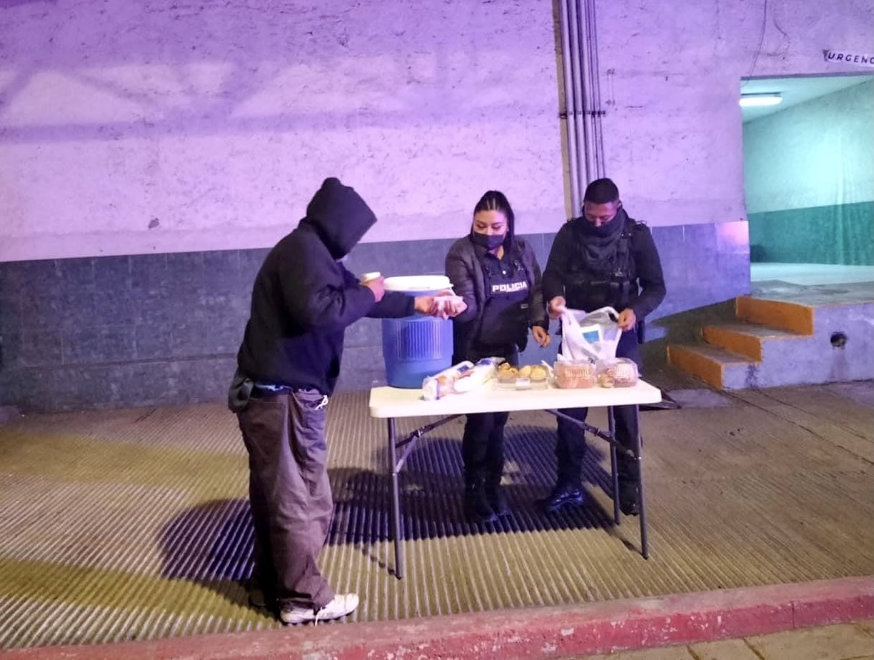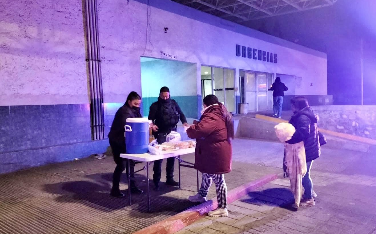 Durante las primeras horas de este domingo y ante el marcado descenso en las temperaturas debido al frente frío número 41, elementos de la Policía Preventiva Municipal de Ramos Arizpe se instalaron al exterior del Hospital Rural Bienestar no. 33, mejor conocido como El Ixtlero para la entrega de bebidas calientes y pan a la ciudadanía que espera por sus familiares al exterior del nosocomio.