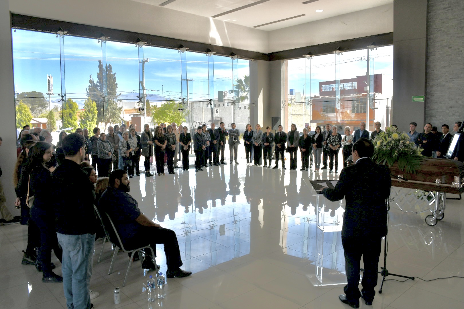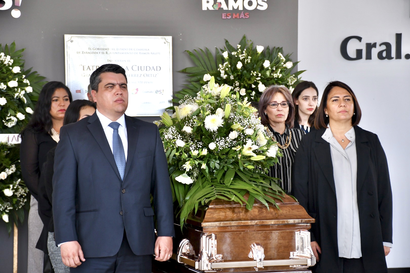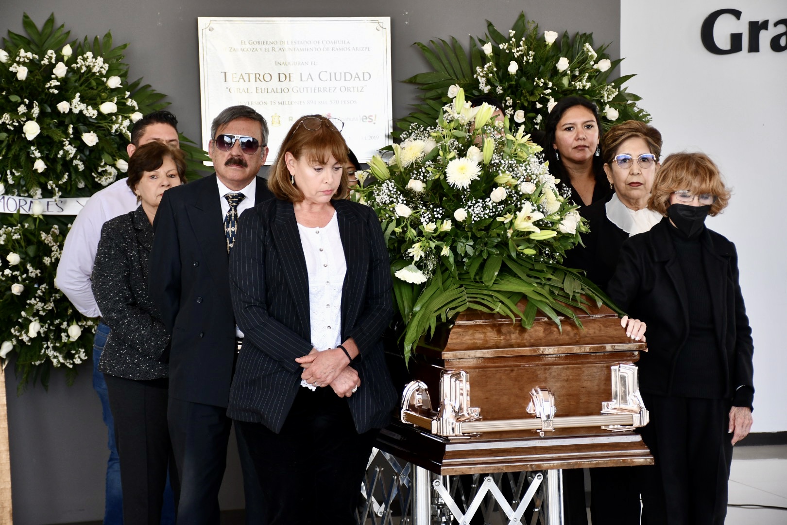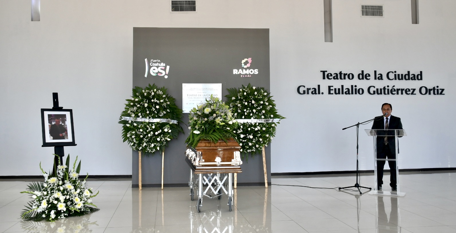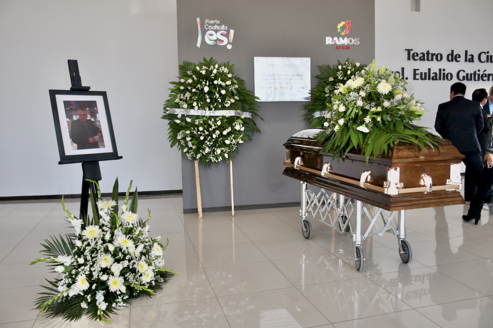 El último adiós al reconocido actor se realizó en el lobby del teatro de la ciudad “Eulalio Gutiérrez Ortiz”, acto en el cual se montaron guardias de honor entre familiares, amistades, compañeros de trabajo y autoridades del ayuntamiento de Ramos Arizpe.