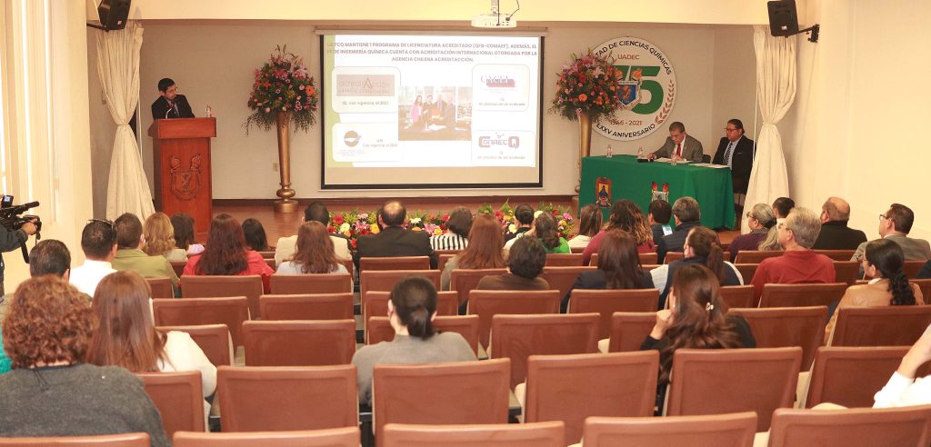 En su mensaje el Rector dijo que la Facultad de Ciencias Químicas pone en alto el nombre de la Universidad, gracias a la entrega, experiencia, talento y profesionalismo de quienes la conforman, por lo que exhortó a la comunidad universitaria a continuar trabajando en equilibrio, con base en los valores que distinguen al plantel.