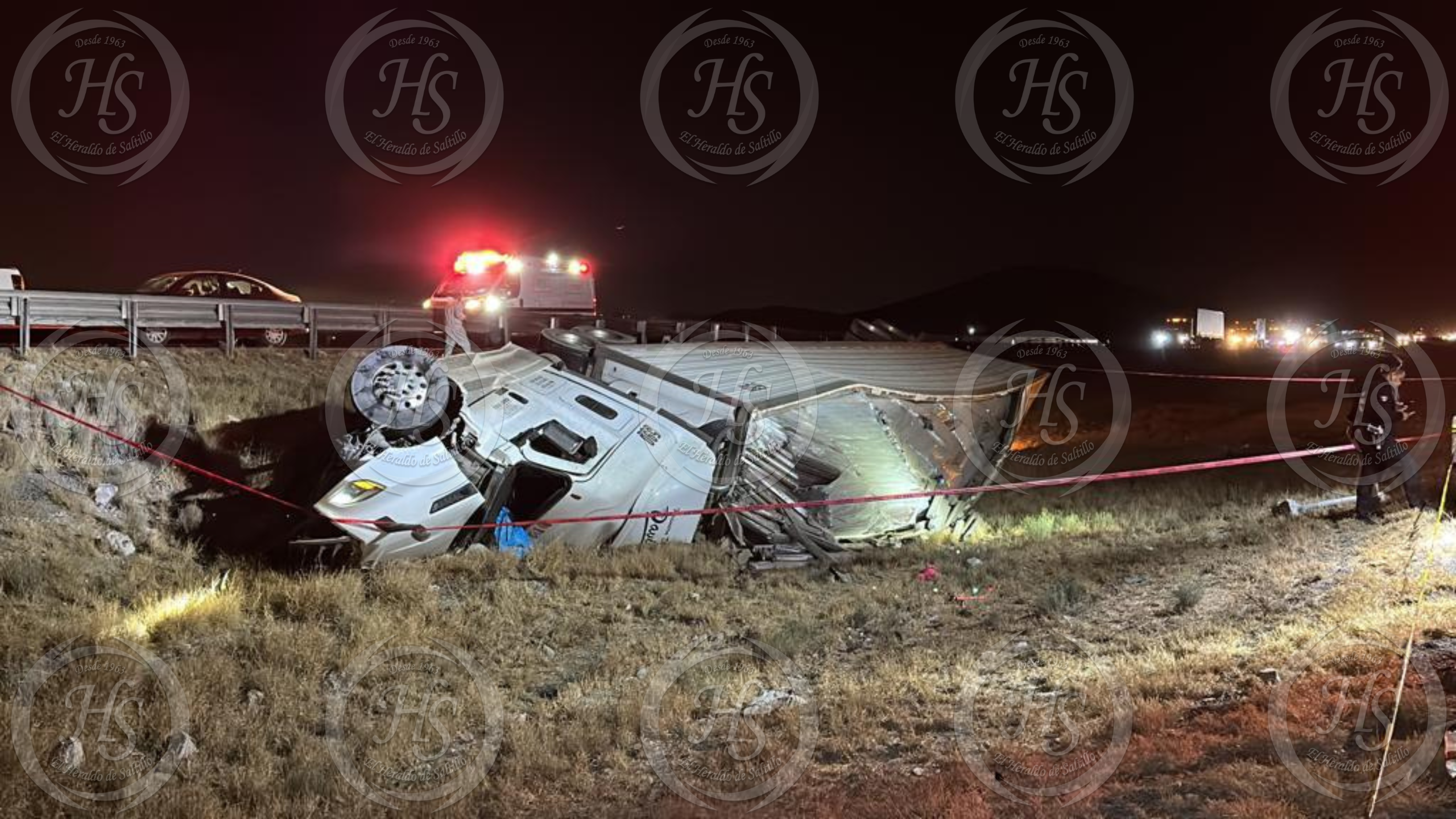 Un hombre perdió la vida luego de salir del camino y volcar aparatosamente su transporte de carga, la noche de este miércoles, sobre la carretera 57, en el tramo Carbonera-Ojo Caliente, en Arteaga, Coahuila.