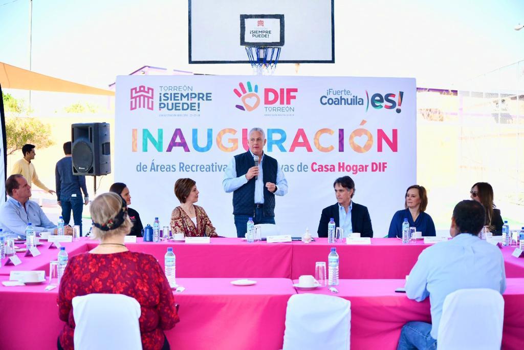 Torreón, Coahuila.- El Alcalde Román Alberto Cepeda González, inauguró áreas recreativas y deportivas en la Casa Hogar del Sistema para el Desarrollo Integral de la Familia de Torreón (DIF), lugar donde habitan los niños y adolescentes que se encuentran bajo resguardo del organismo.