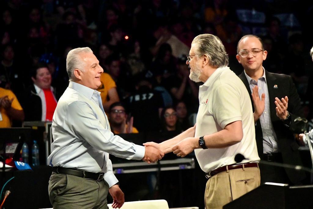 Torreón, Coahuila.- El Alcalde de Torreón, Román Alberto Cepeda González, dio la bienvenida a los estudiantes que participan en el FIRST Robotics Competition, evento que tiene como sede el TEC de Monterrey Campus Laguna.