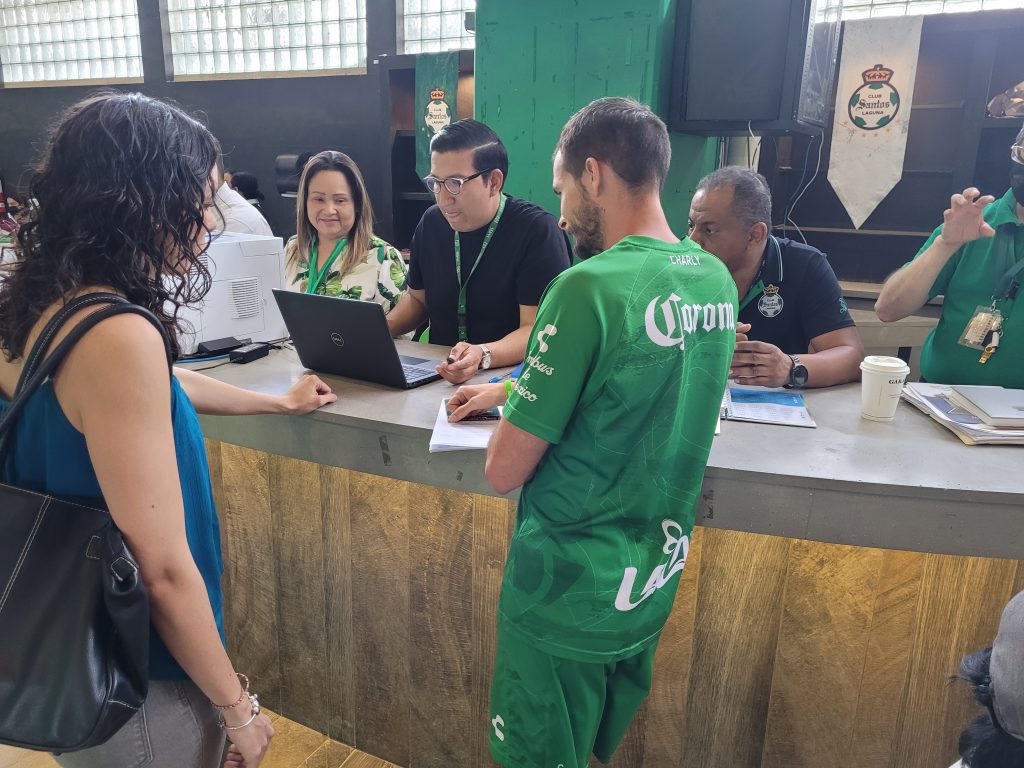 Torreón.- Trabajadores del Club Santos Laguna se beneficiaron con actividades del programa PrevenIMSS por medio de una feria de la salud en la que la Unidad de Medicina Familiar (UMF) No. 80 del Instituto Mexicano del Seguro Social (IMSS), en Torreón, ofreció detecciones de diabetes, hipertensión, somatometría, VIH, hepatitis B, salud bucal, revisión de cartilla nacional de salud así como aplicación de vacunas; mientras que personal de la subdelegación realizó consultas de número de seguridad social, vigencias, altas de beneficiarios entre otros trámites.