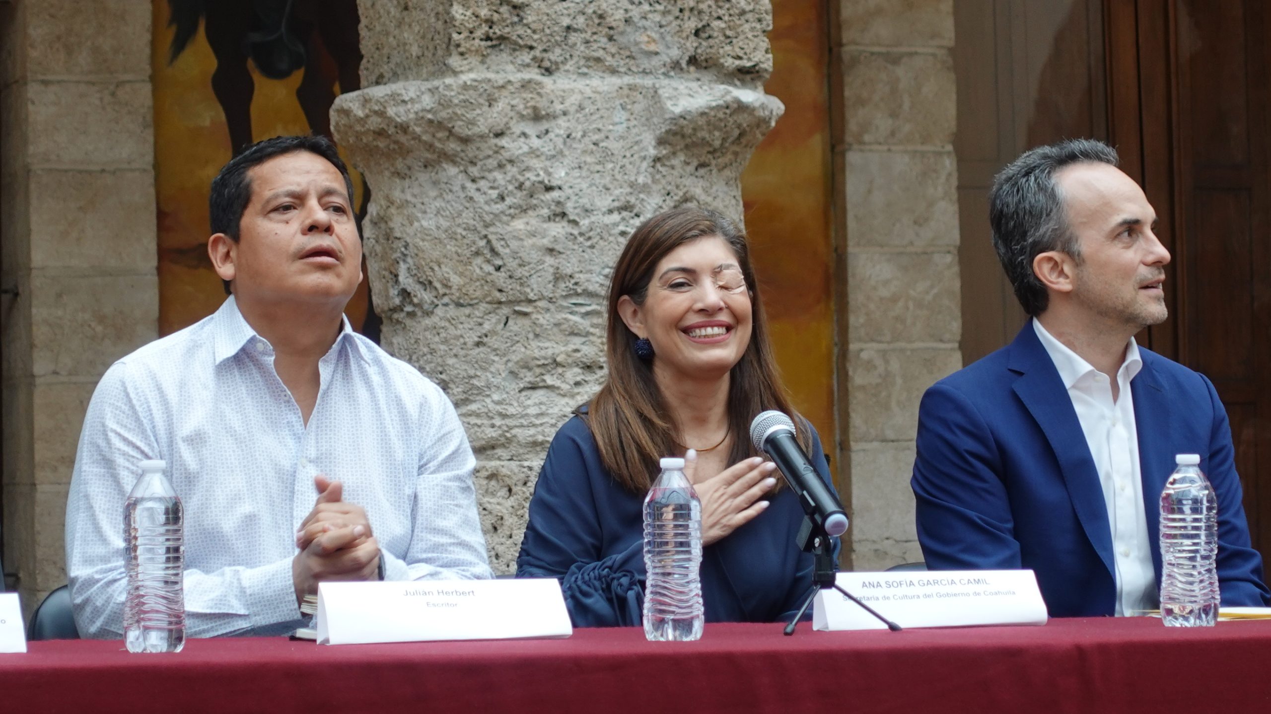 «Aprovecho esta mesa para anunciar que una de las finalistas del Premio Nacional Primera Novela 2022, Marcela García, estará en la Feria Internacional del Libro Coahuila 2023, el 6 de mayo, para presentar la novela Pompeyo Muerto, con la que ganó esta destacada mención. Invito a las escritoras y escritores noveles de Coahuila a que participen en este certamen literario», extendió Ana Sofía García Camil, secretaria de Cultura de Coahuila, al mencionar que la entidad será sede de la premiación de este certamen literario.