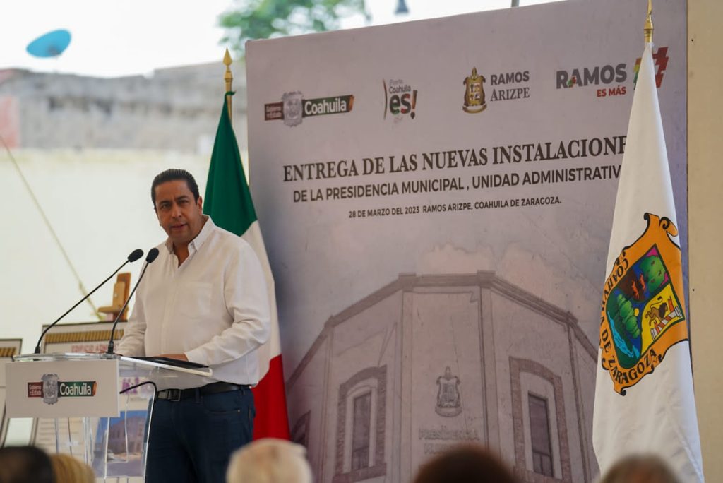 En la ceremonia de entrega del nuevo edificio administrativo de la Presidencia Municipal de Ramos Arizpe, Morales Padilla resaltó que el adecuado manejo de las finanzas municipales, y el apoyo del gobernador Miguel Ángel Riquelme Solís, han permitido este incremento en la inversión para obra pública.