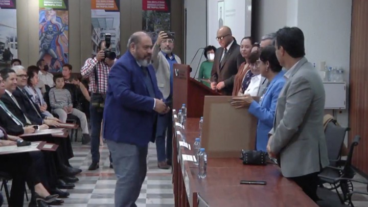 En la rectoría general y ante los rectores de las cinco unidades, Xochimilco, Azcapotzalco, Cuajimalpa, Iztapalapa y Lerma, e invitados especiales, la UAM realizó el reconocimiento a trayectorias de personas egresadas de Licenciatura y Posgrado 2022 al Dr. Cristóbal Noé Aguilar González.