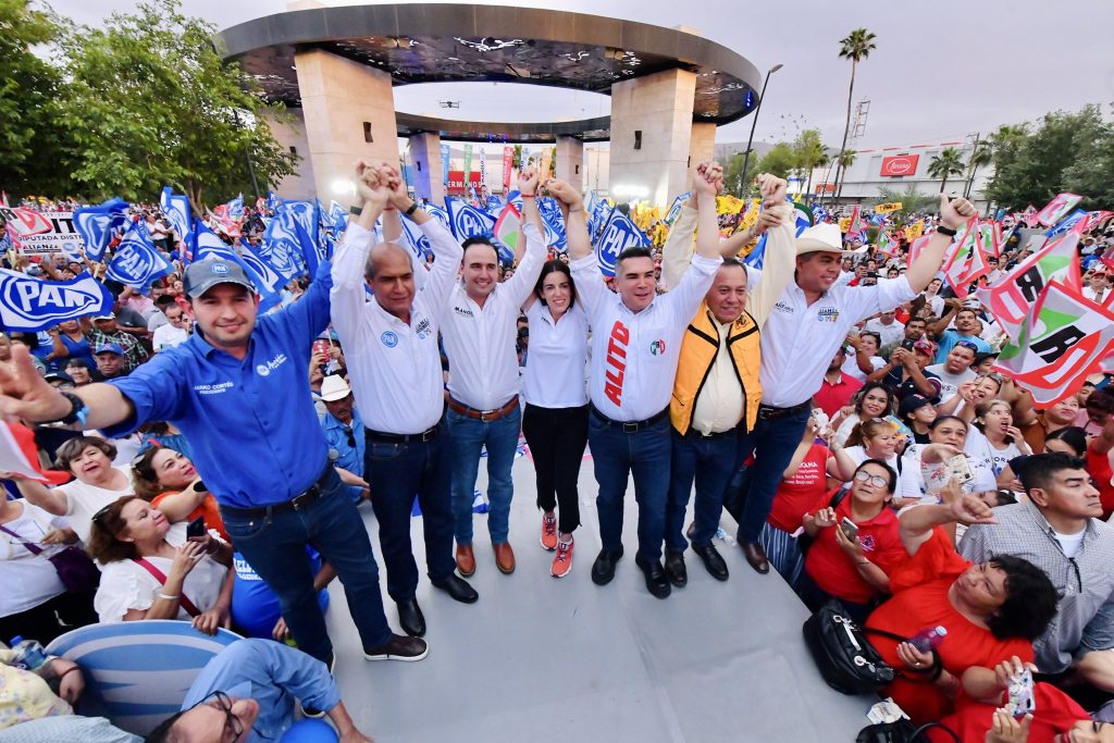 Al lado de Manolo Jiménez y de miles de pobladores de esta demarcación que le refrendaron su confianza, el Presidente Alejandro Moreno sostuvo que “vamos a ganar para que a las familias coahuilenses les siga yendo bien”.