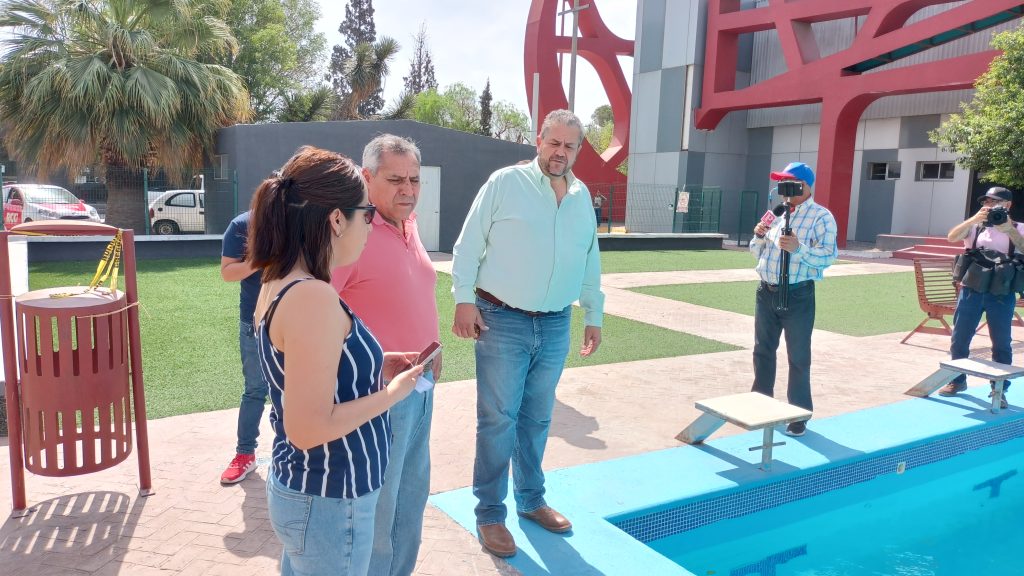 Acompañado de los directores de deportes del Municipio, Arturo Ramírez Lira y Francisco Solís Rodríguez, y por Mayra Martínez encargada de la alberca semi olímpica, el secretario atestiguó las labores de mantenimiento en ese espacio de primer nivel, donde se espera que en esta temporada alta reciban instrucción más de 500 personas de todas las edades, además de ofrecerse también terapias de rehabilitación para quienes así lo requieran.