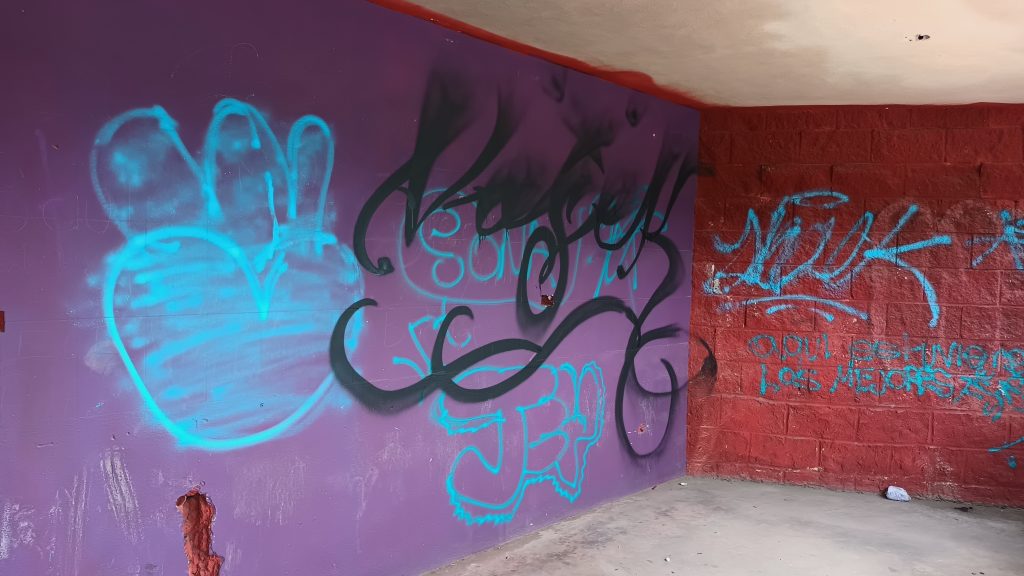 Igualmente, la base metálica de la estructura se muestra llena de pintas realizadas por los vagos que diariamente acuden a hacer desmanes, además de intoxicarse e ingerir bebidas embriagantes.