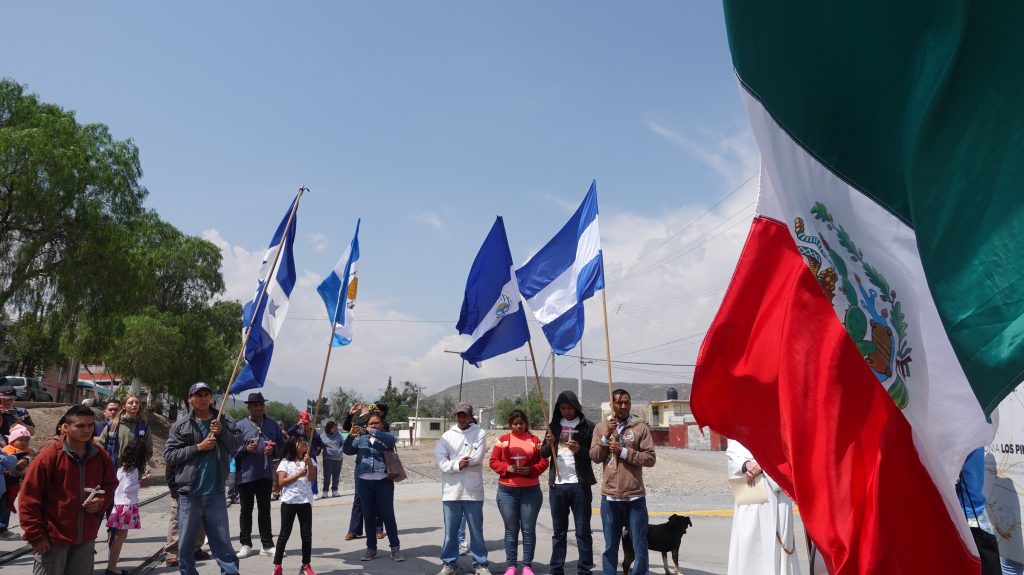 Son las 11:00 de la mañana del 7 de abril del 2023, decenas de ciudadanos extranjeros se reúnen dentro de la Casa del Migrante de Saltillo, portan algunas banderas de su tierra natal y cruces como símbolo de su fe católica.