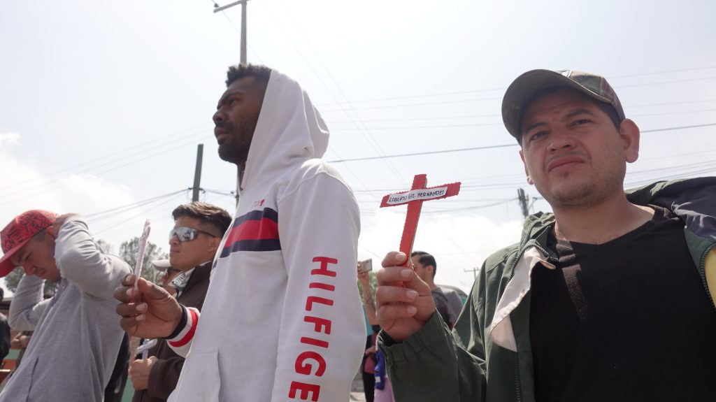 Tras del espacio que les da refugio temporal, se dirigen a las vías del tren cercanas a la colonia Landín. Esta vez no esperan probar suerte para trasladarse en este transporte hasta la frontera de Coahuila con Estados Unidos, se han reunido para recordar a Jesús en su viacrucis.