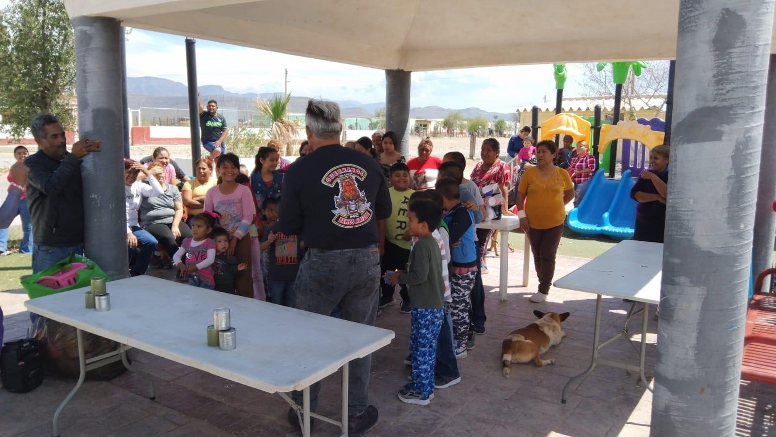Con la visita al ejido La Sauceda, más de 40 familias resultaron favorecidas con los apoyos que les entregaron los miembros de la agrupación ‘Guerreros con Causa’, tales como ropa, artículos para el hogar y peluches para la comunidad rural.