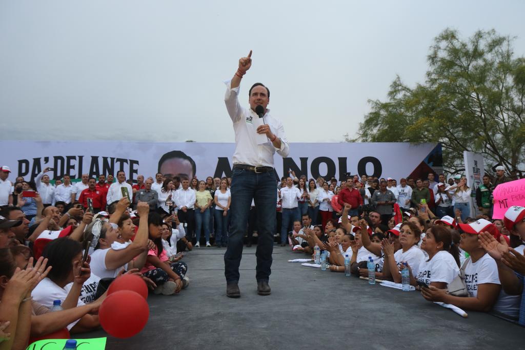 Como parte de su gira de trabajo, el candidato de los partidos Acción Nacional, Revolucionario Institucional y de la Revolución Democrática, también entregó sus propuestas en una de las principales avenidas de la ciudad y se reunió con miles de simpatizantes y militantes en la Gran Línea Verde, donde resaltó el tema de la salud popular, con la cual se dotará de una tarjeta para adultos mayores y población vulnerable para que accedan a consultas, medicamentos y estudios gratuitos. (EL HERALDO)