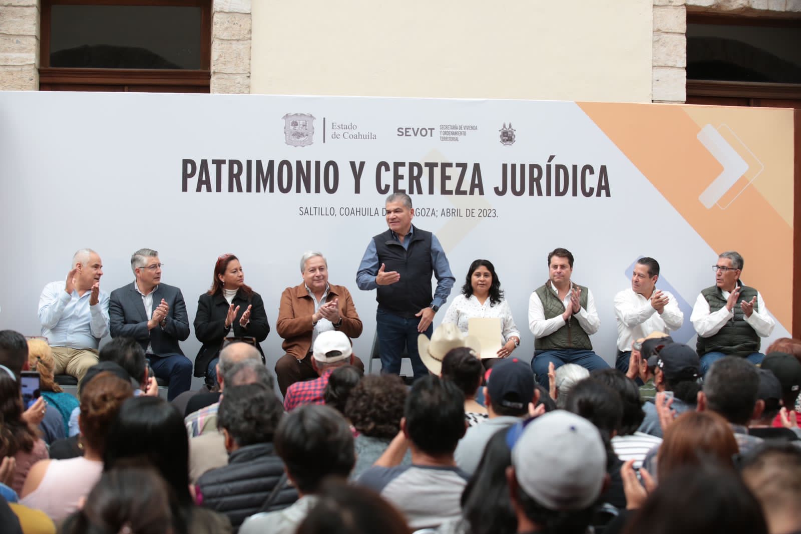 En un evento realizado ante la ciudadanía, autoridades estatales de vivienda y representantes de notarios públicos, el gobernador del Estado señaló que todos los que tramitan de forma legal sus escrituras, se convierten en dueños de un pedazo de Coahuila y México.