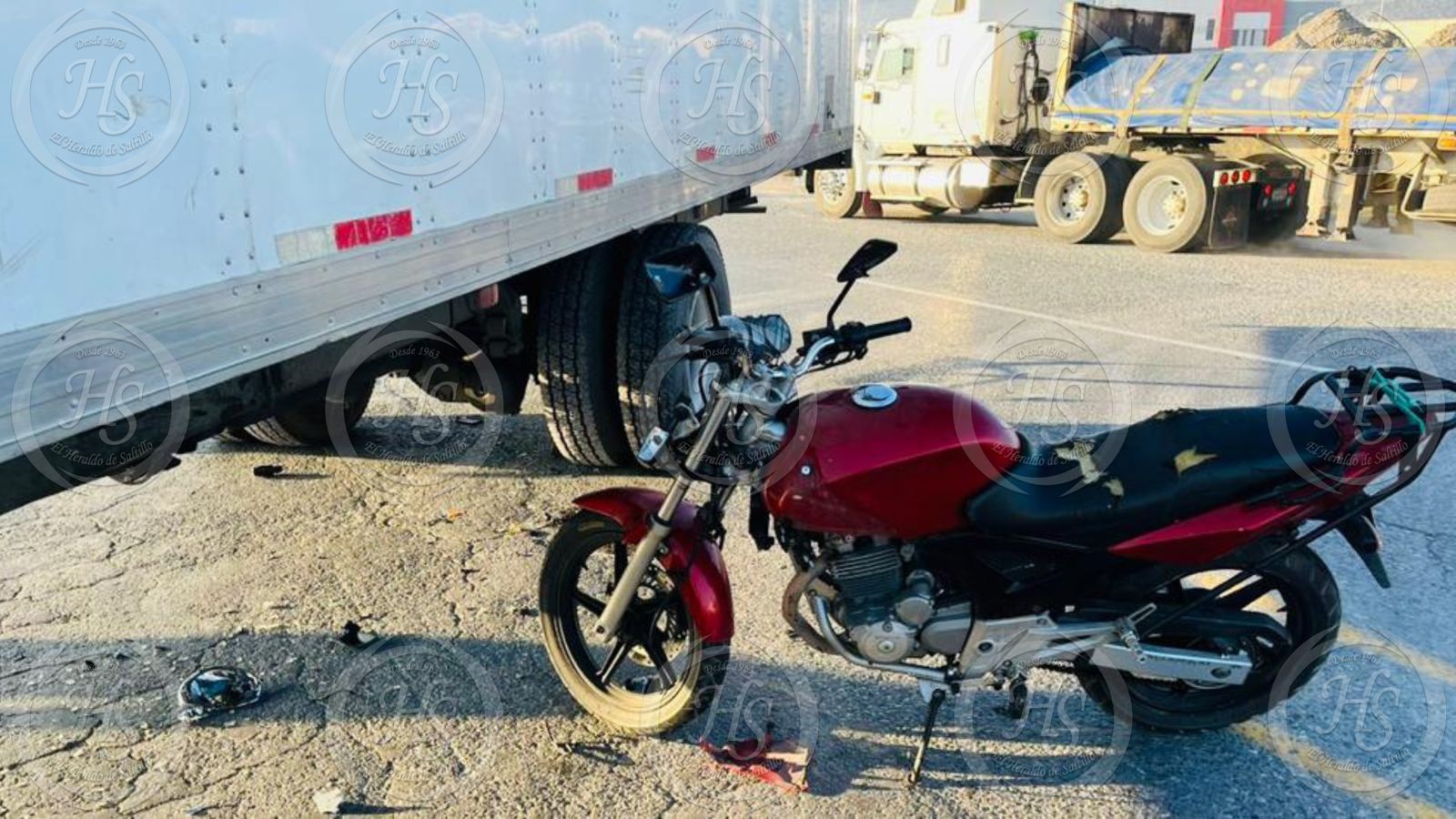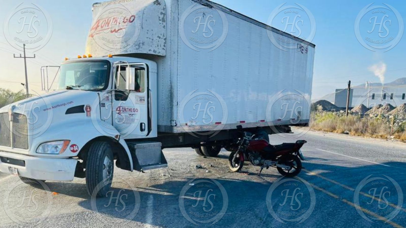 Un motociclista se impactó en contra del conductor de un transporte de carga, que presuntamente intentó retornar sin precaución alguna, sobre la carretera antigua Monclova.