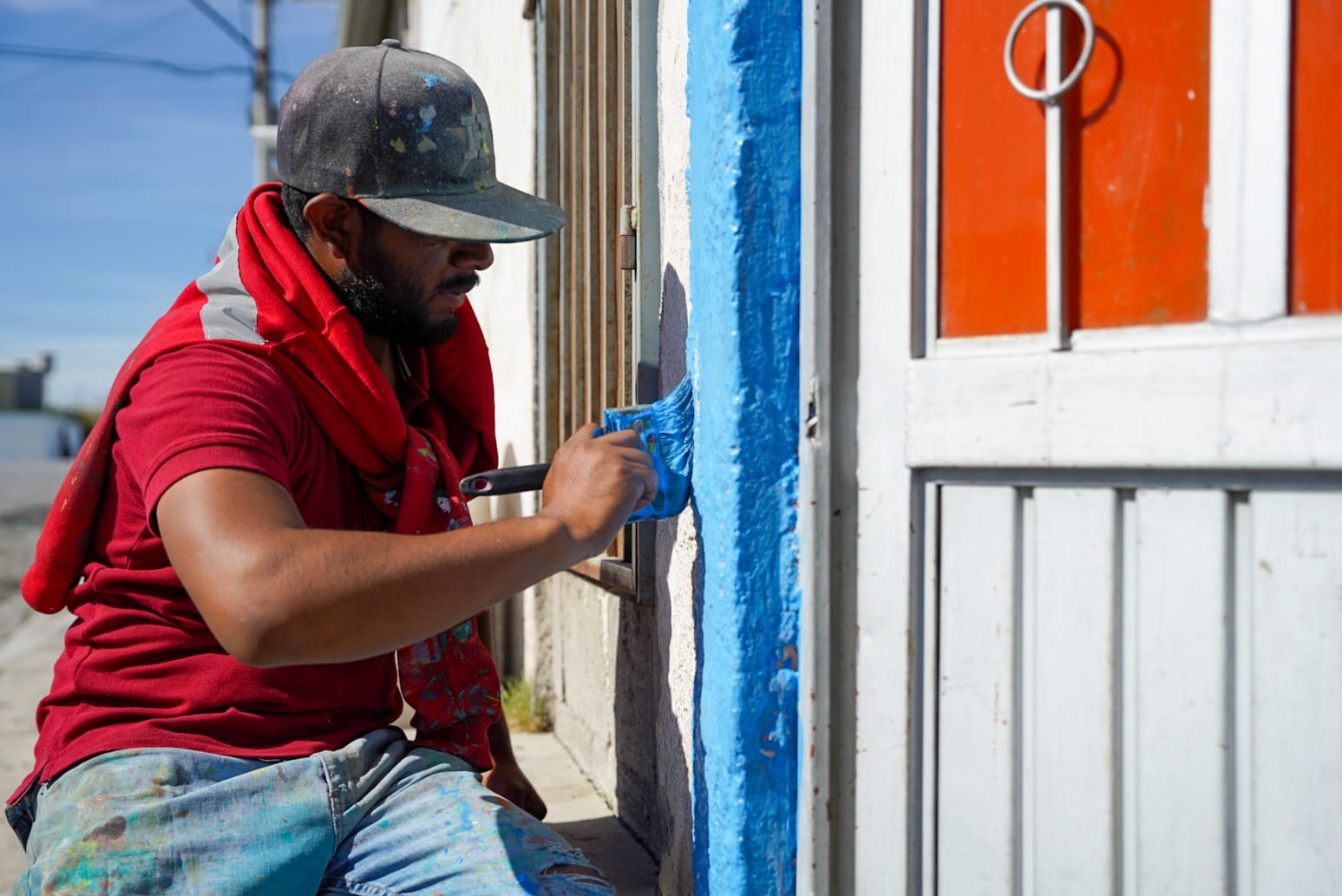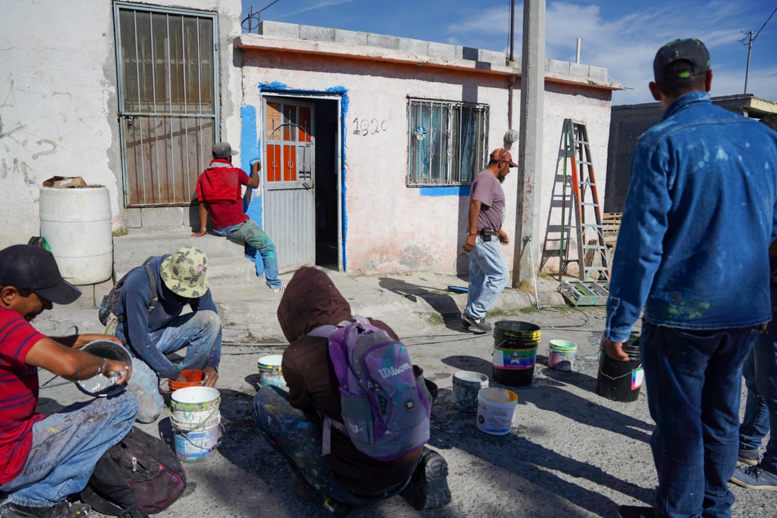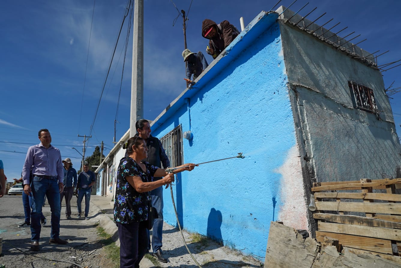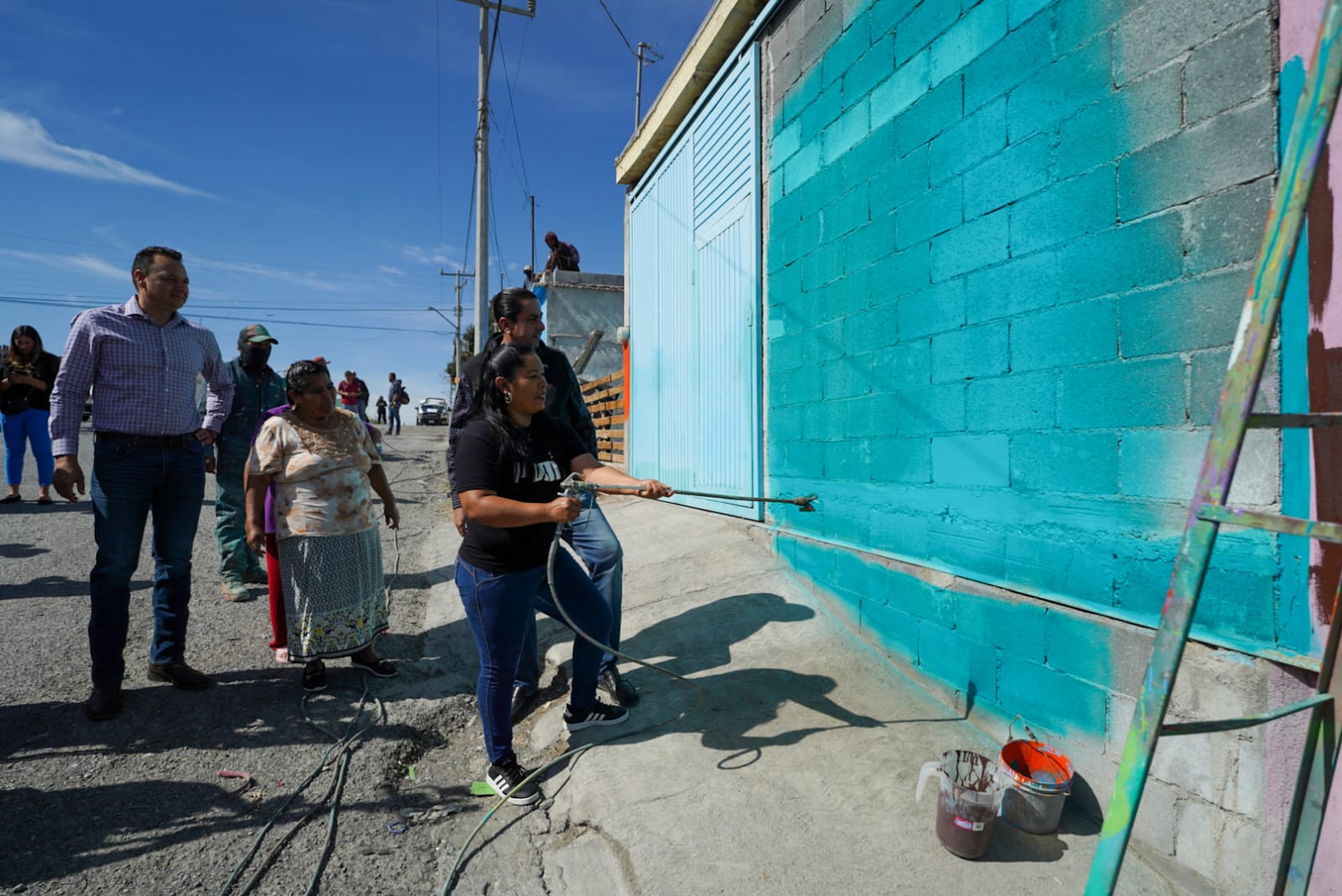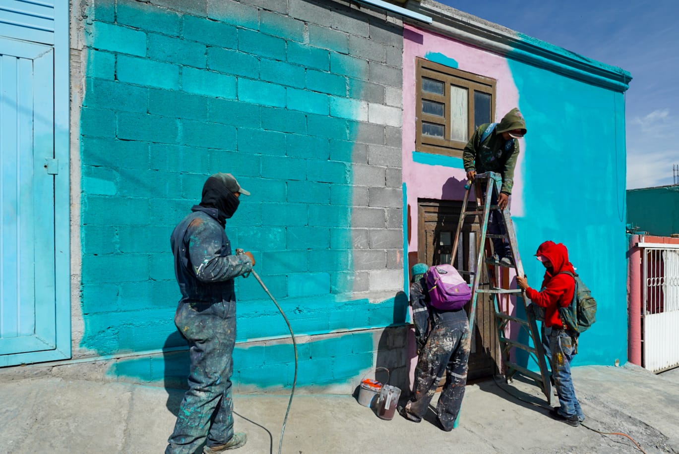 Con varias alternativas de colores, se lleva a cabo la aplicación de pintura en domicilios de las calles Federalismo, División, Ayuntamiento, Constituyentes, Guillermo Sánchez, Juan Álvarez y Ramos Arizpe.