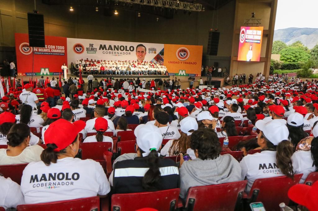 Ante miles de ciudadanos, militantes y trabajadores de Coahuila, en eventos masivos en Monclova y Saltillo, el candidato a gobernador de la Alianza Ciudadana por la Seguridad, Manolo Jiménez Salinas, resaltó que durante su administración desarrollará un plan de trabajo que garantice seguridad y mejores empleos para mejorar la calidad de vida de las familias coahuilenses.