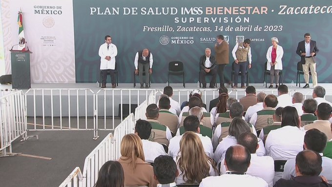 Fresnillo.- El presidente Andrés Manuel López Obrador llegó al Hospital de la Mujer de Fresnillo para supervisar el avance del programa de salud IMSS-Bienestar.