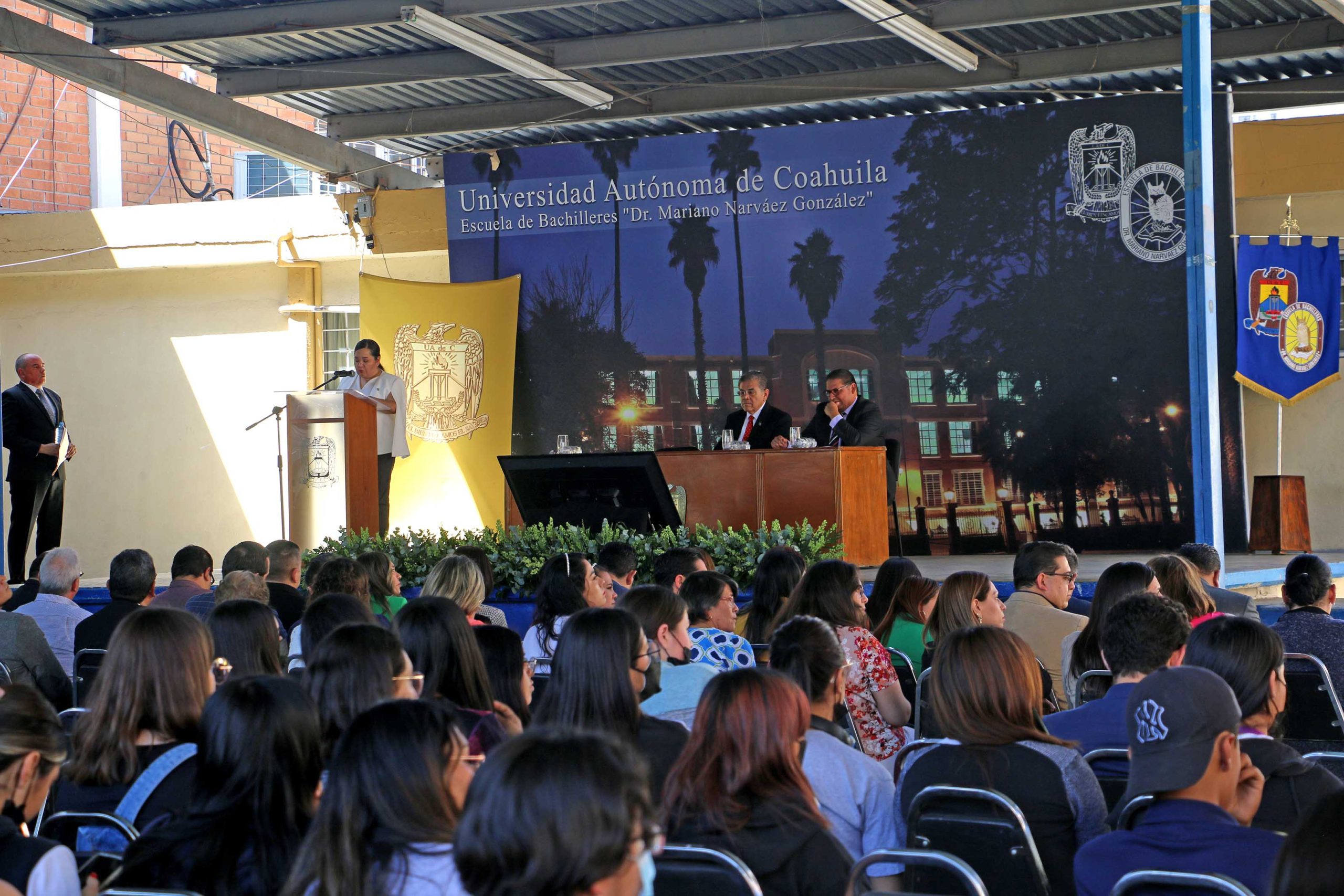 La directora de la Escuela de Bachilleres “Dr. Mariano Narváez”, de la Universidad Autónoma de Coahuila, Claudia Elena García Vega, presentó ante el Consejo Directivo y comunidad del plantel su segundo informe de actividades 2022-2023.