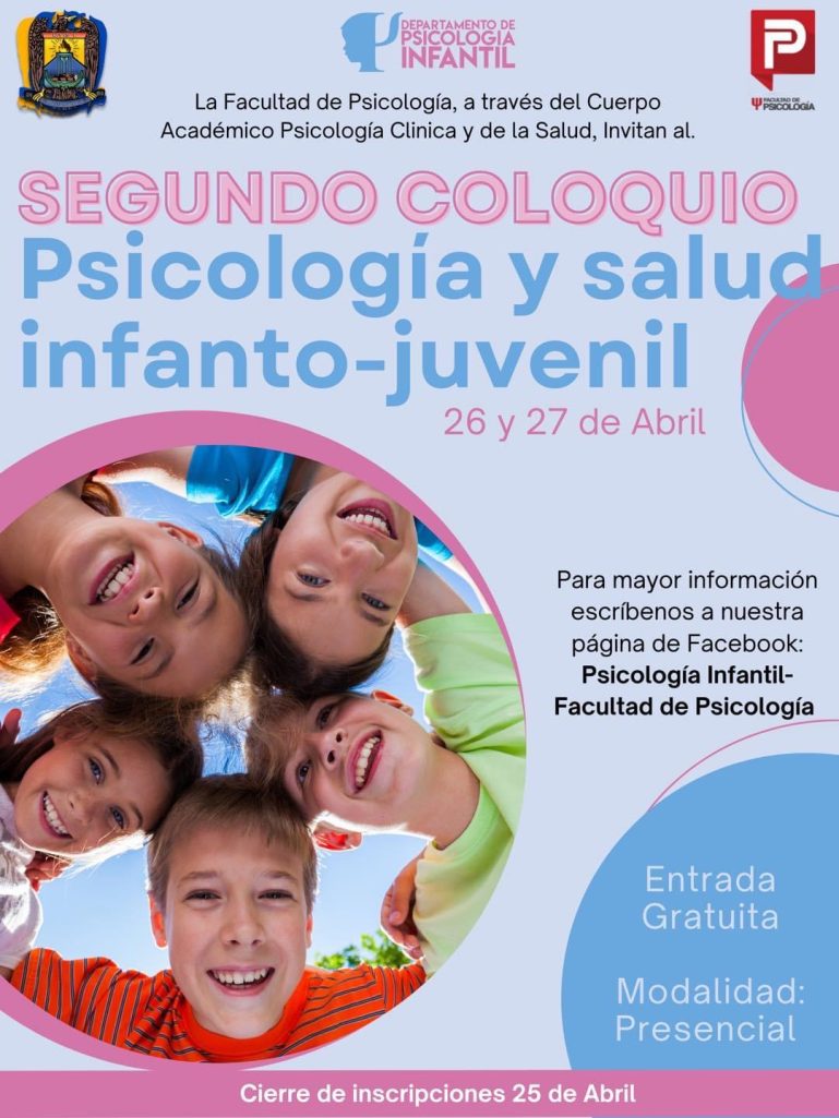 La actividad es gratuita y se desarrollará en el auditorio de la Facultad de Psicología que se ubica en el edificio “F” de la Unidad Camporredondo, los interesados en participar tienen hasta el 25 de abril de 2023 para realizar su inscripción, para lo que deberán de escribir al Facebook Psicología infantil – Facultad de Psicología.