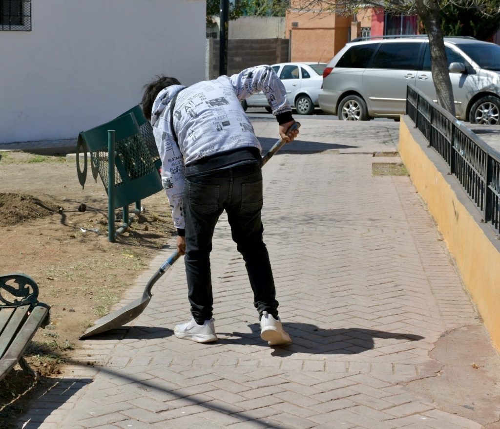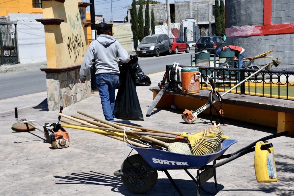 Los trabajadores acudieron a la calle Arroyo Nuevo a un costado del Mercado Blanca Esthela, donde realizaron trabajos de limpieza en áreas verdes y las canchas deportivas; se pintaron cordones cunetas, poda de árboles y arbustos así como retirar más de 100 kilos de basura acumulada en los 350 metros cuadrados de área pública.