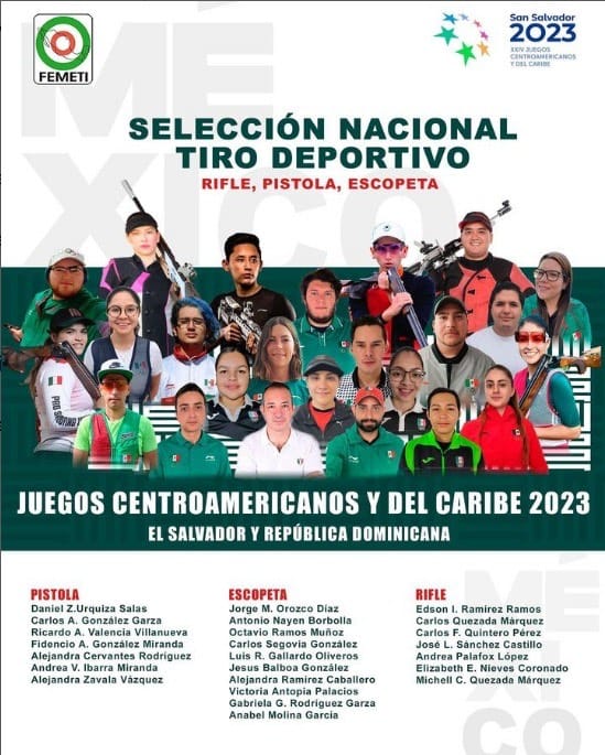 La Federación Mexicana de Tiro y Caza (FEMETI) hizo oficial la lista de seleccionados que participarán en los Juegos Centroamericanos y del Caribe San Salvador 2023, donde figuran los coahuilenses Edson Ismael Ramírez Ramos y Gabriela Rodríguez Garza.