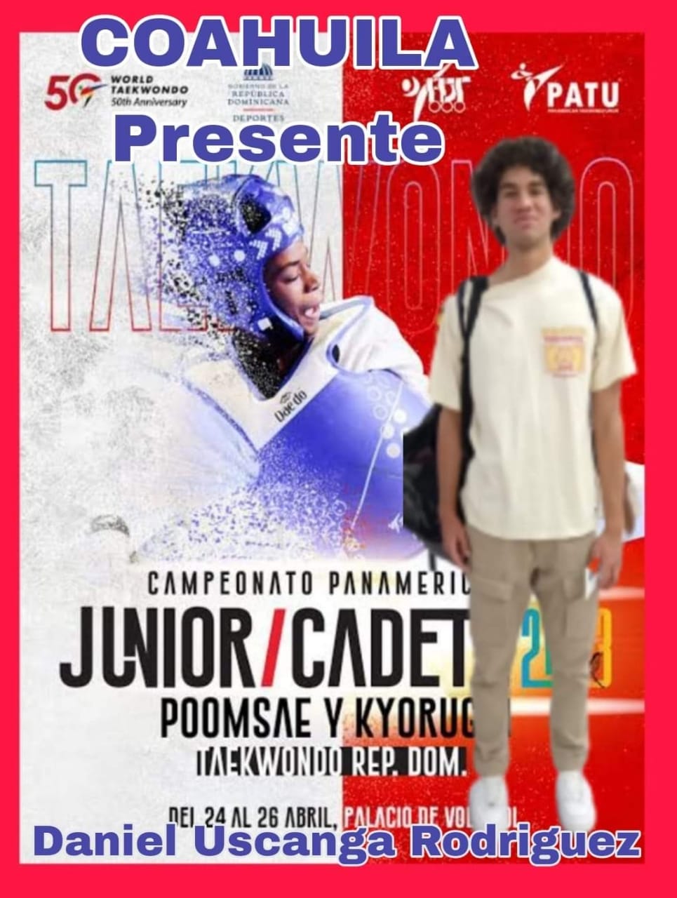 El coahuilense Daniel Uscanga Rodríguez partió rumbo a República Dominicana para participar en el Campeonato Cadete y Juvenil de Taekwondo, que se llevará a cabo del 24 al 26 de abril.